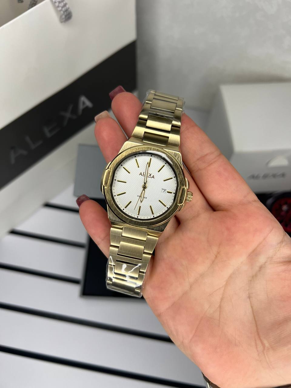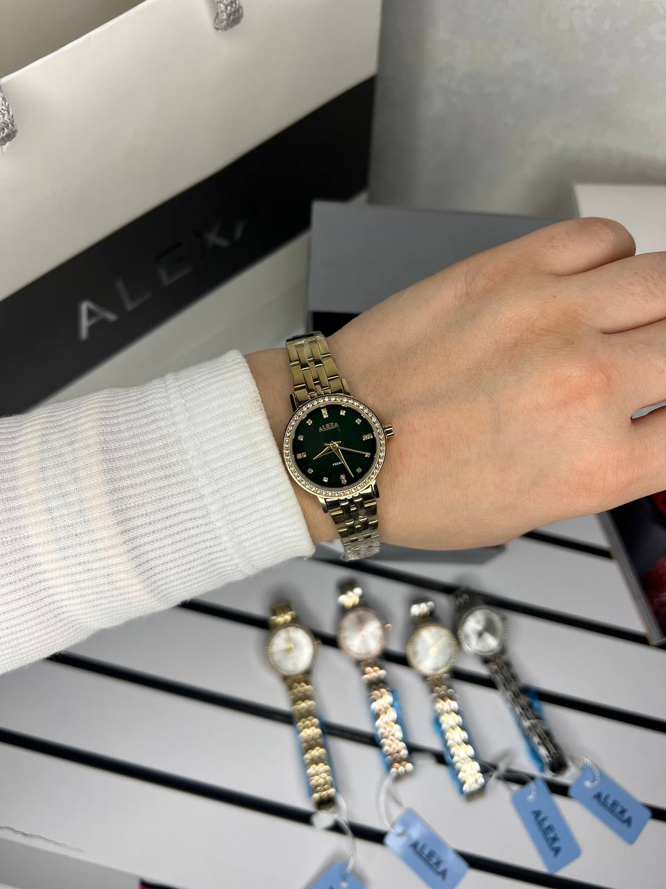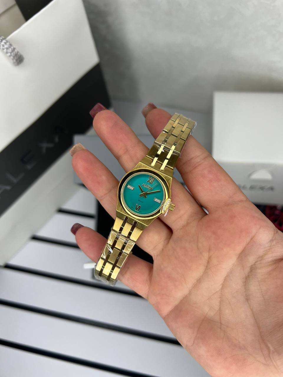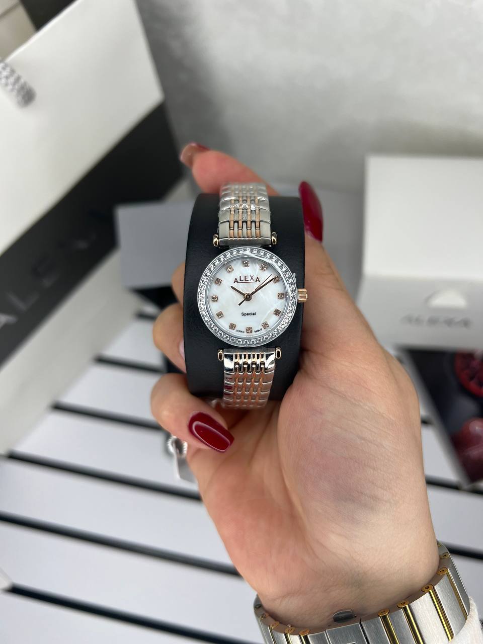 ساعت زنانه مارک الکسا Alexa موتور ژاپن ضداب بند بازبه همراه پک کامل جعبه ویک سال گارانتی