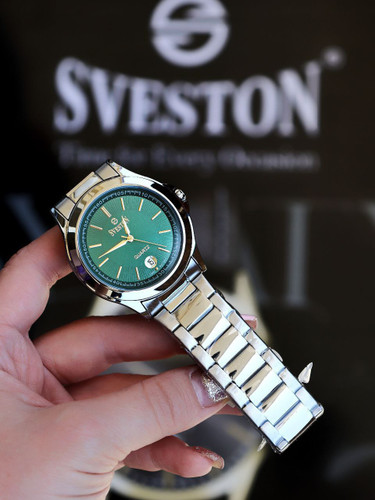 ساعت مردانه مارک سویستون رنگ ثابت تقویم دار موتور ژاپن ضداب وسط نگینی SVESTON