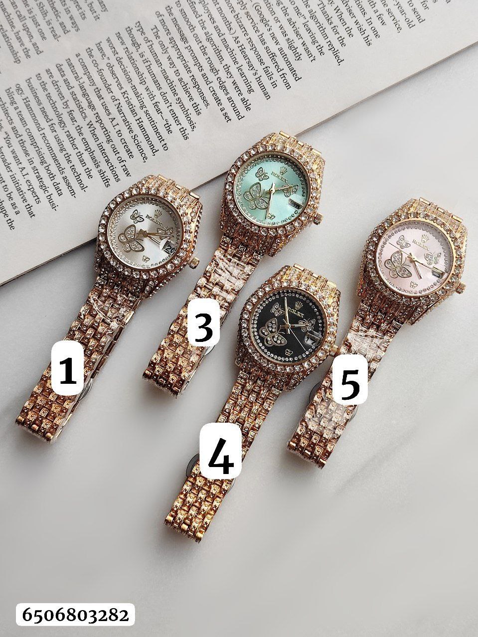 ساعت زنانه دخترانه پرنگین رولکس قفل مخفی تقویم دار