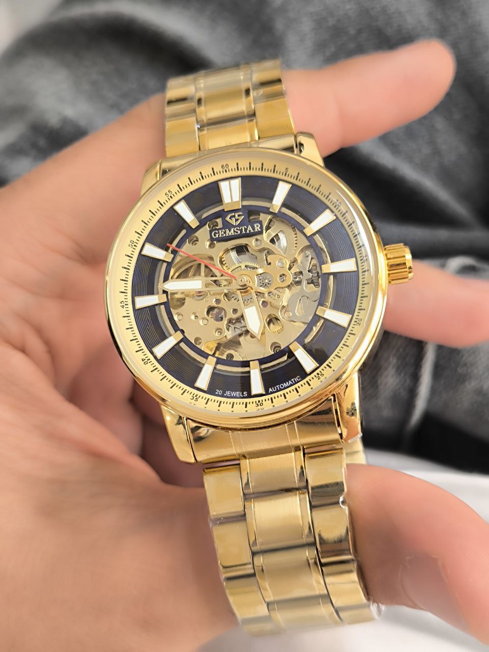 ساعت فلزی جم استار اتومات،رنگثابت،پشت شیشه ای،اتومات بدون نیاز به باطری،هک مارک روی قفل