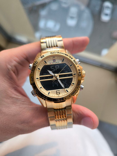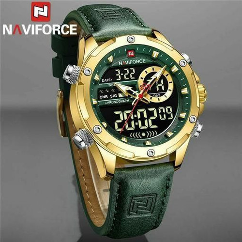 ساعت مردانه مارک ناویفورس مدل naviforce 9195دوزمانه چراغ دار رنگ ثابت ضد اب بند استیل ضد حساسیت موتور ژاپن به همراه پک کامل