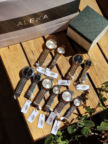 ست ساعت زنانه مردانه مارک الکساALEXAموتورژاپن ضد اب رنگ ثابت به همراه پک اورجینال شرکتی ویک سال گارانتی شرکتی کپی