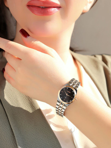 ساعت زنانه امگا بند استیل قفل ضامن داررنگ ثابتOMEGA