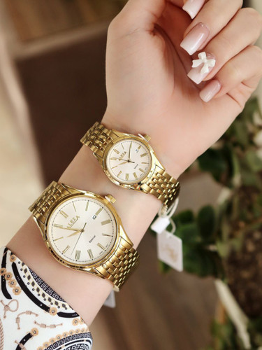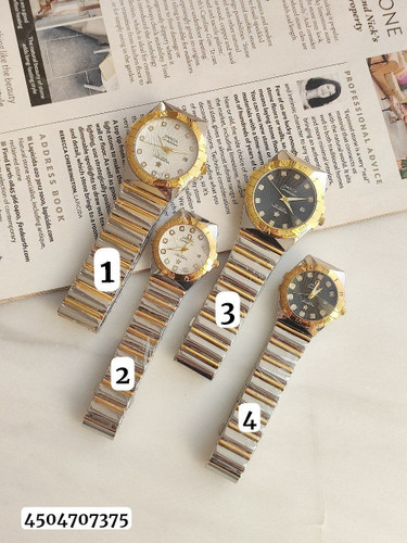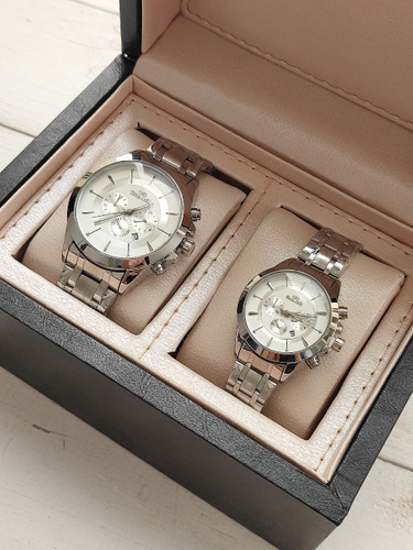 ست ساعت زنانه مردانه فلزی طرح اومگا OMEGA کیفیت عالی تقویم دار قفل ضامن دار