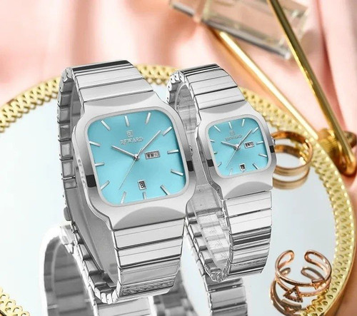 ست ساعت زنانه مردانه RADO موتور ژاپن بند استیل 316رنگ ثابت تقویم دار