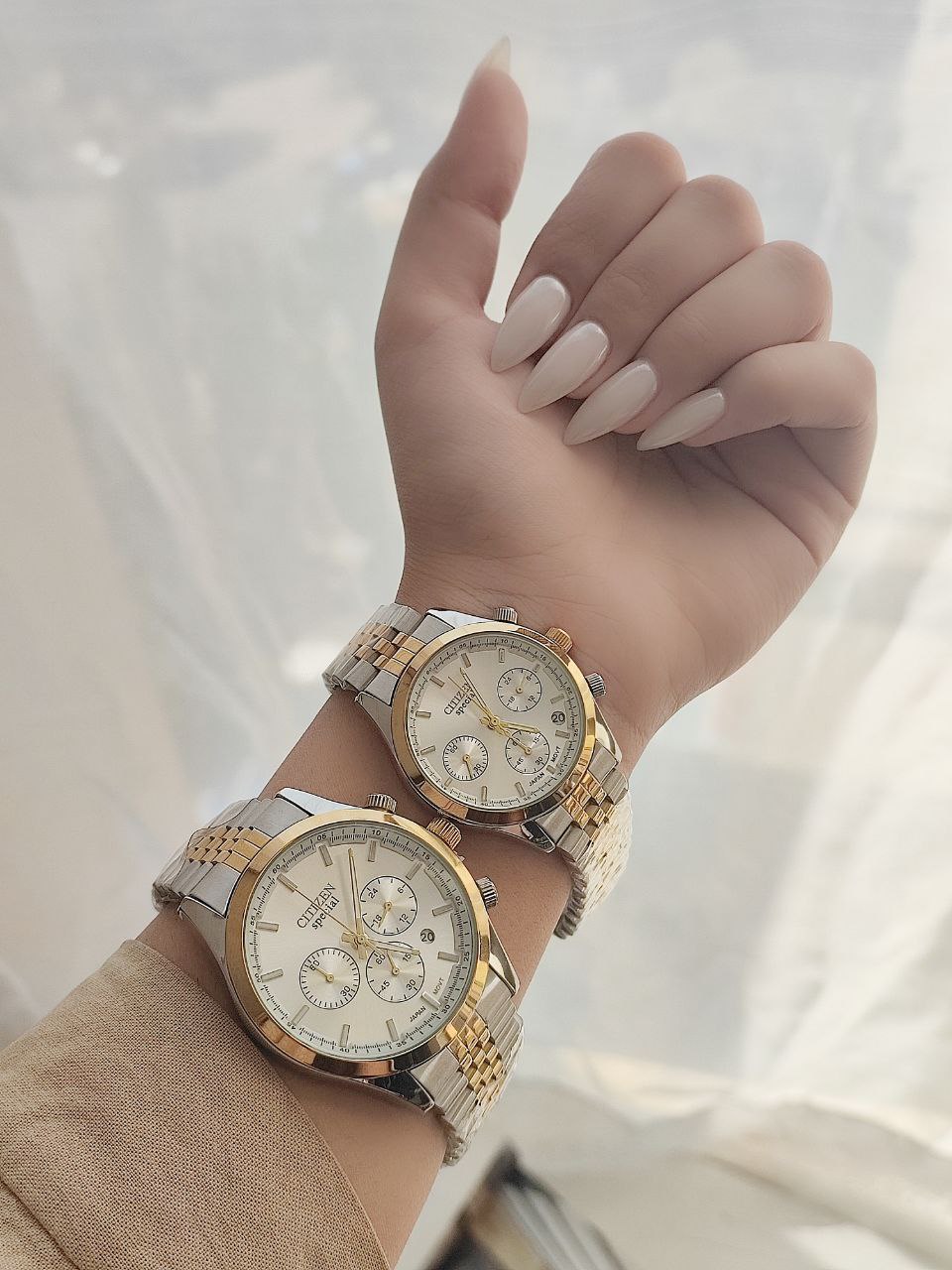 ست ساعت زنانه مردانه مارک سیتیزن موتور ژاپن ضداب تقویم دار کیفیت مسترCITIZEN