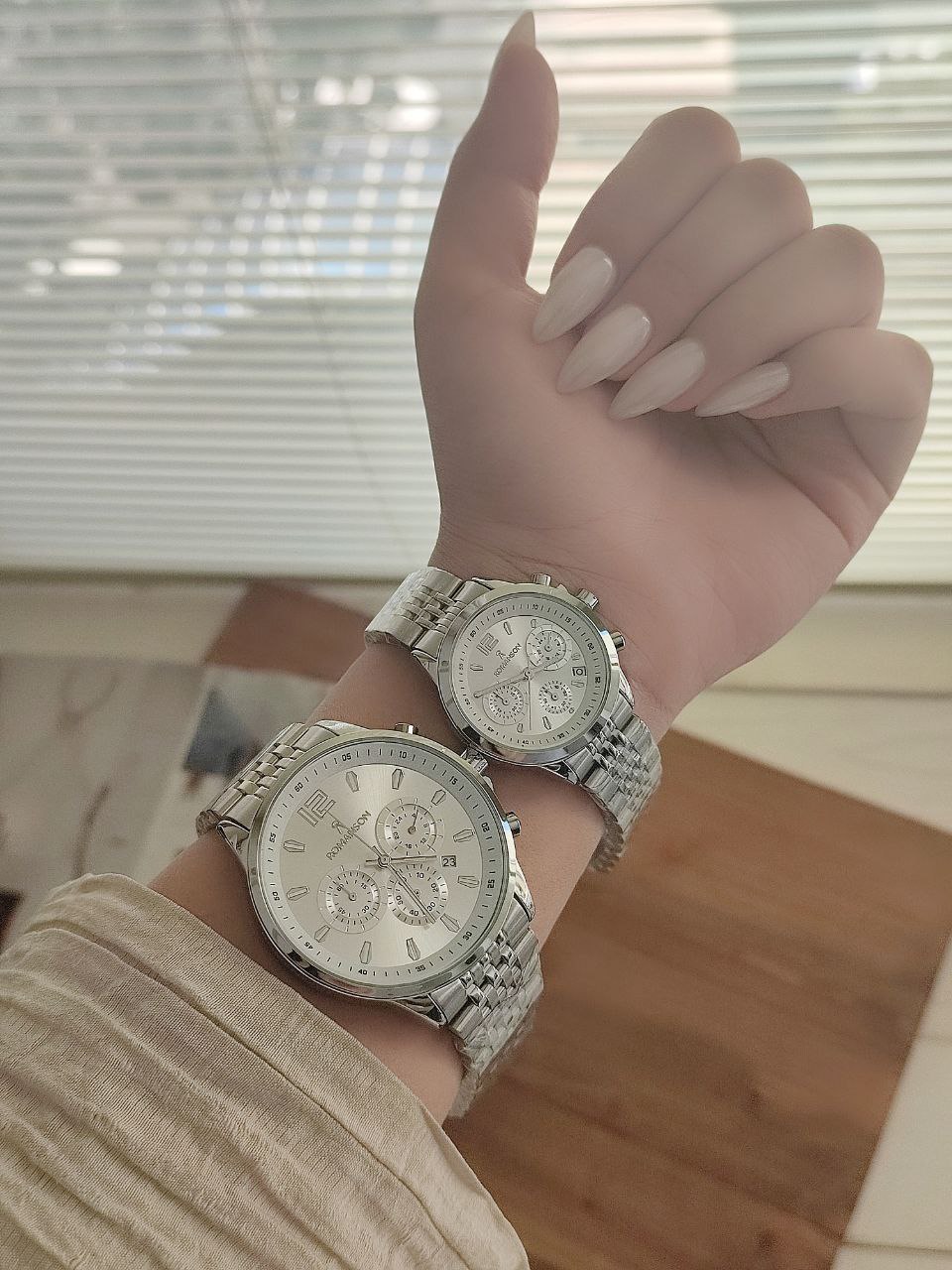 ست ساعت زنانه مردانه مارک رومانسون ROMANSON رنگ ثابت کیفیت عالی سه موتوره فعال بند استیل درجه یک