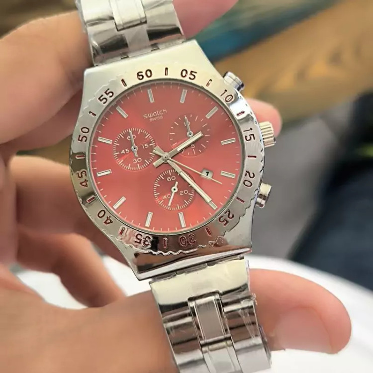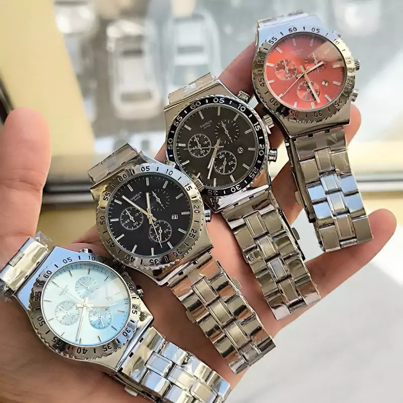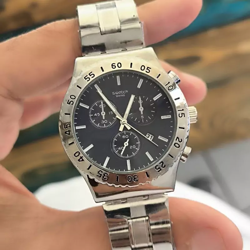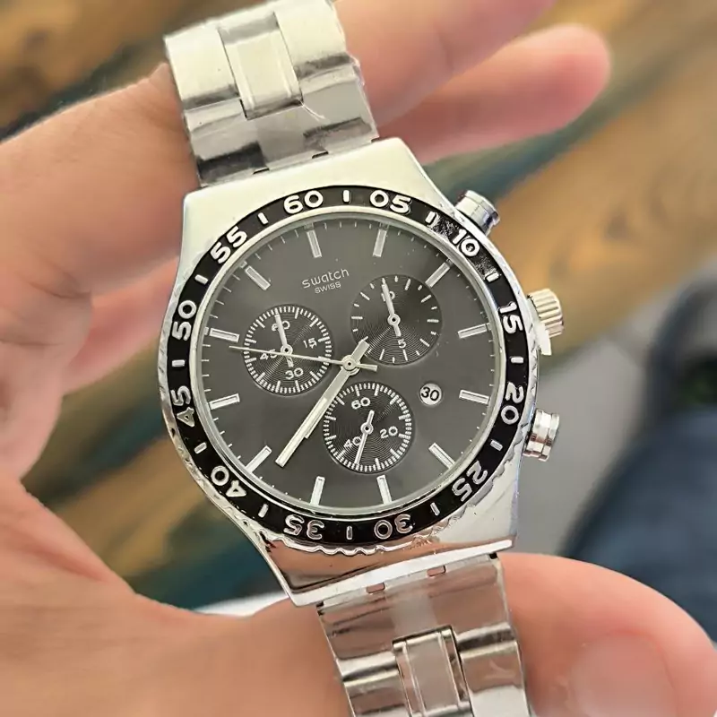 ساعت مردانه فلزی مارک سواچ. swatchرنگ ثابت تقویم دار طرح سه موتوره