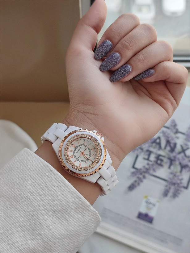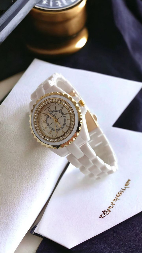 ساعت دخترانه وزنانه بند سرامیکی تقویم دار مارک CHANELشنل