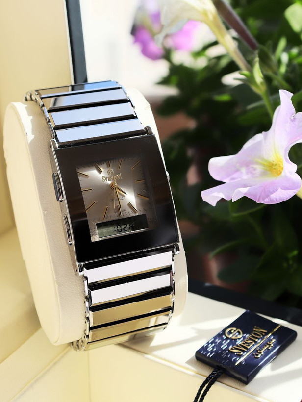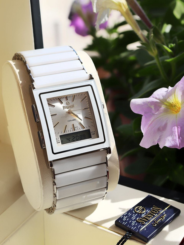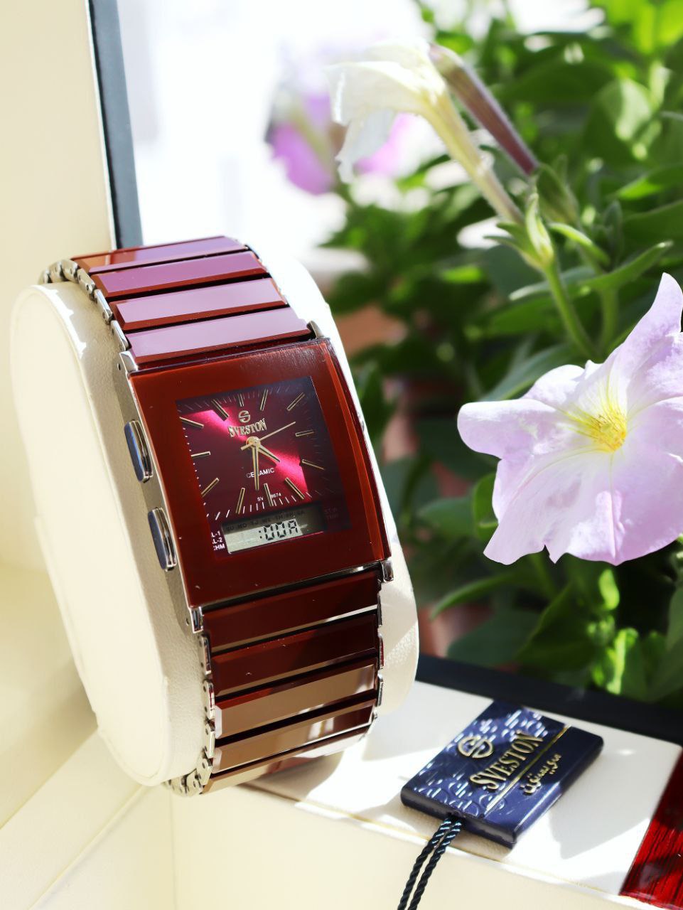 ساعت مردانه سرامیکی سویستن موتور ژاپن رنگ ثابت دوزمانه اصالت ژاپنی