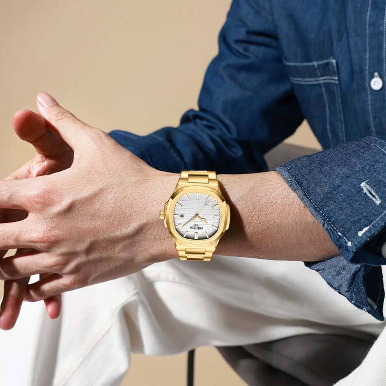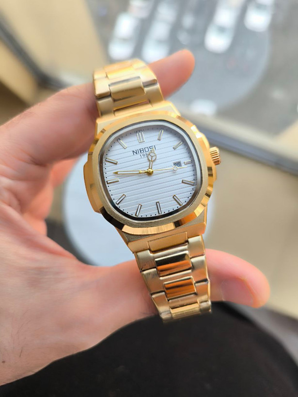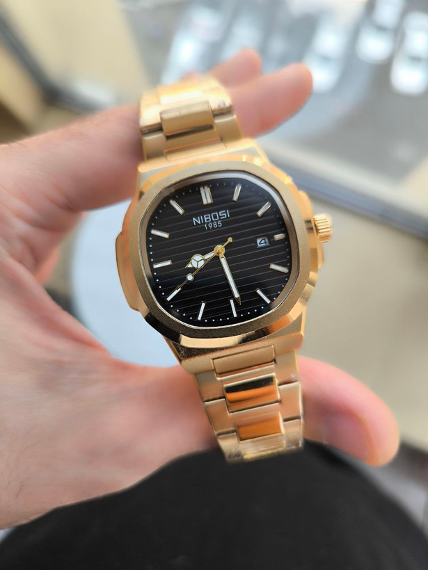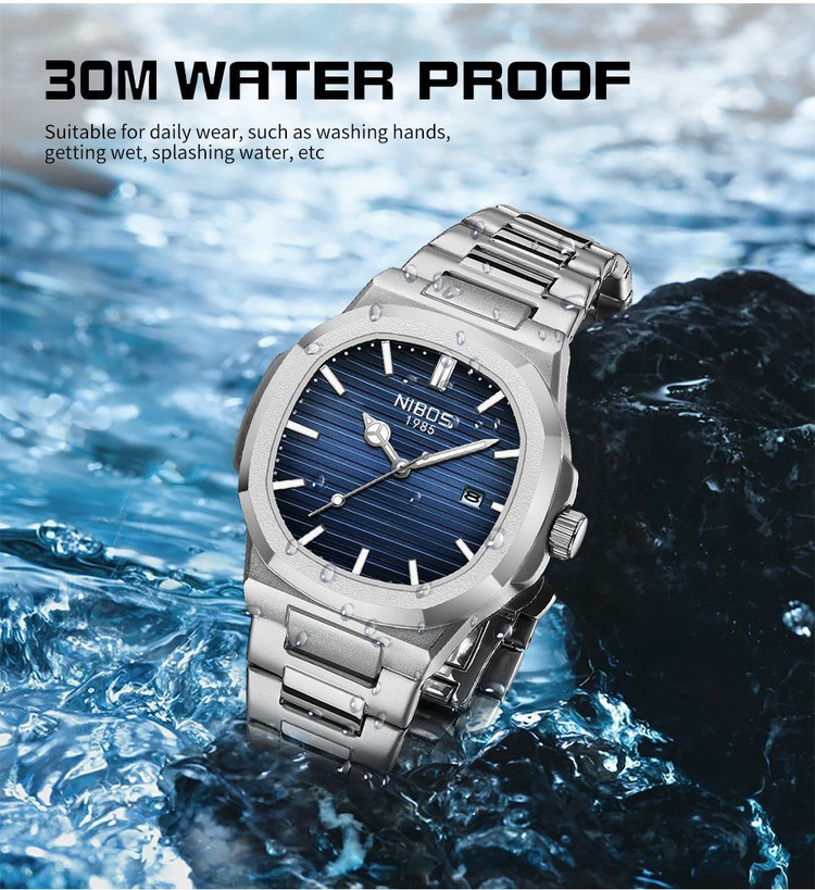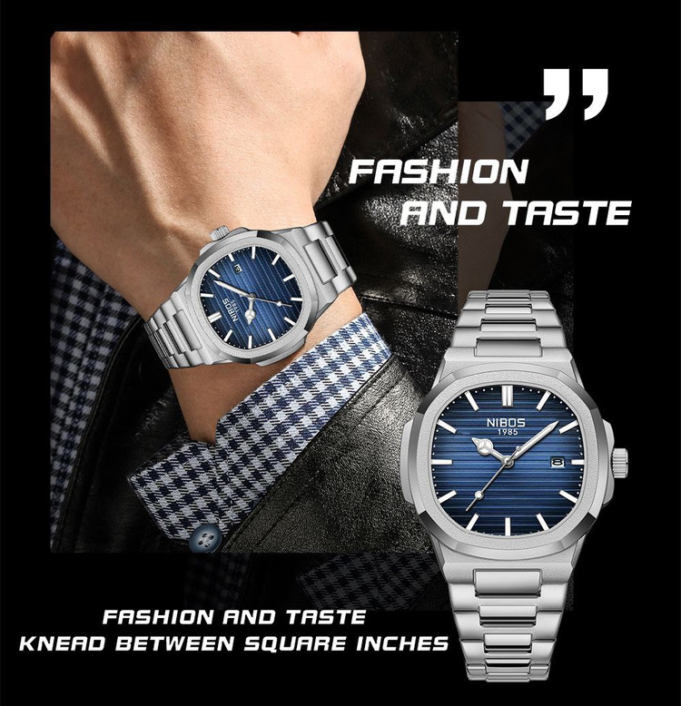 ساعت مردانه صفحه مربعی مارک نیبوشی رنگ ثابت تقویم دار nibosi