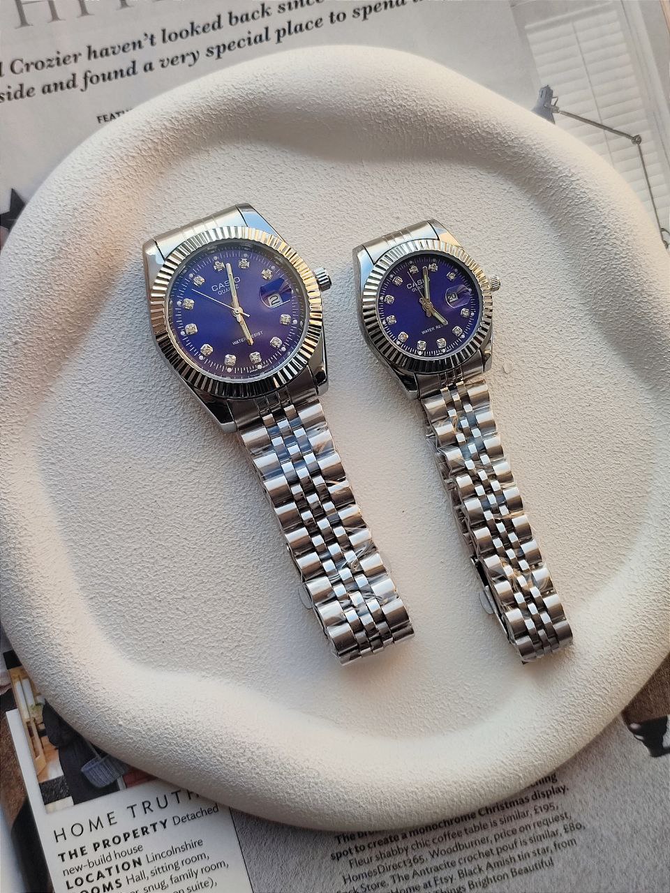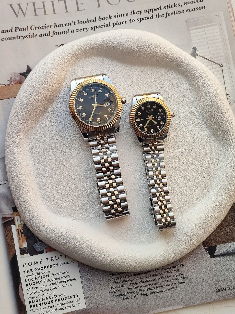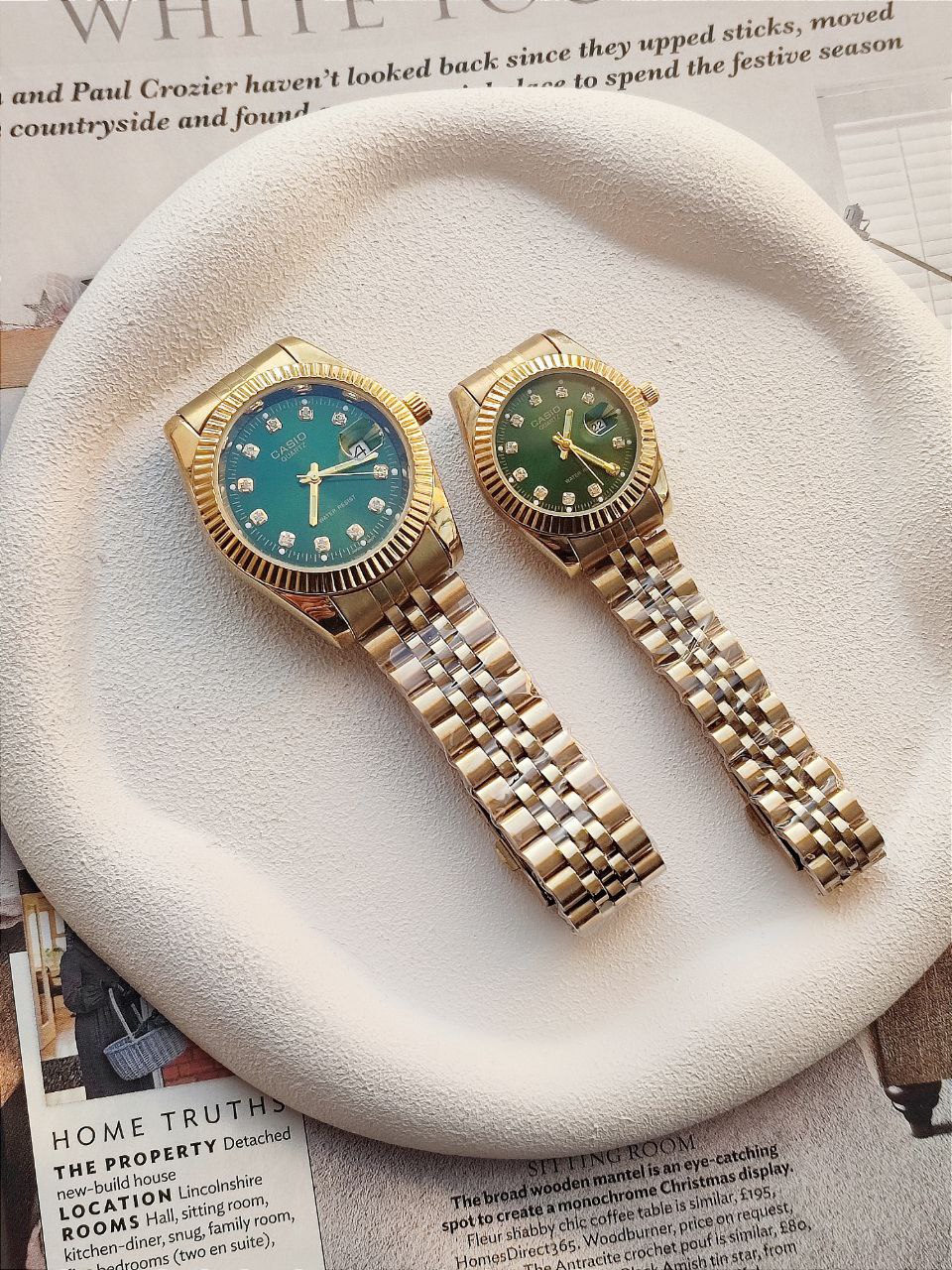 ست ساعت زنانه مردانه مارک کاسیو طرح رولکس رنگ ثابت قفل مخفی