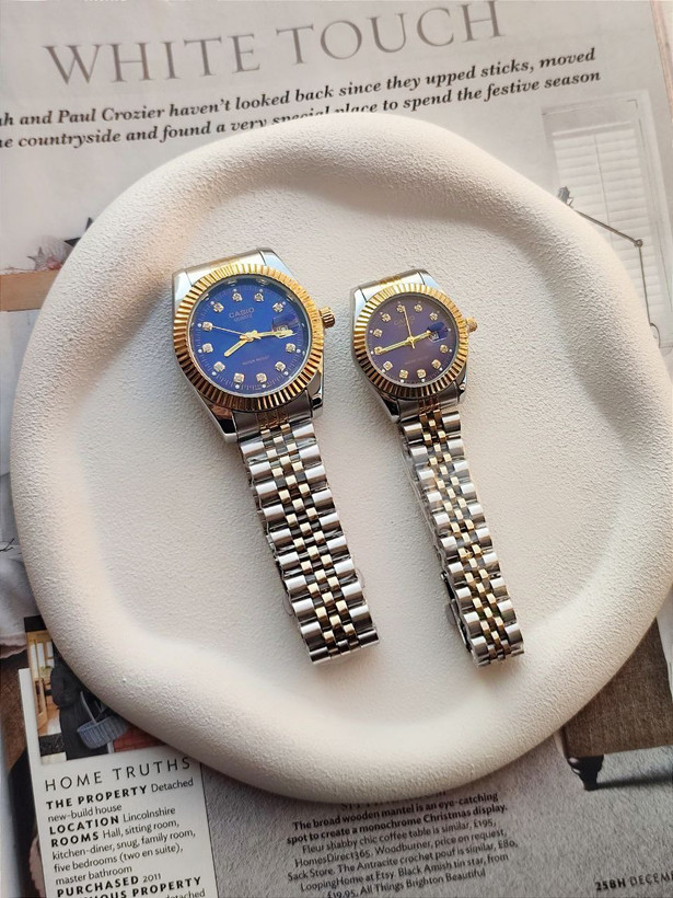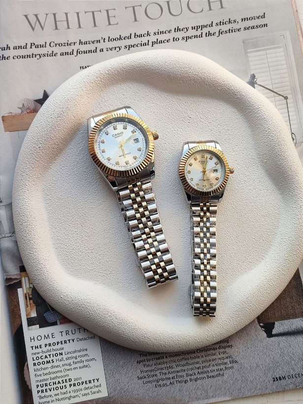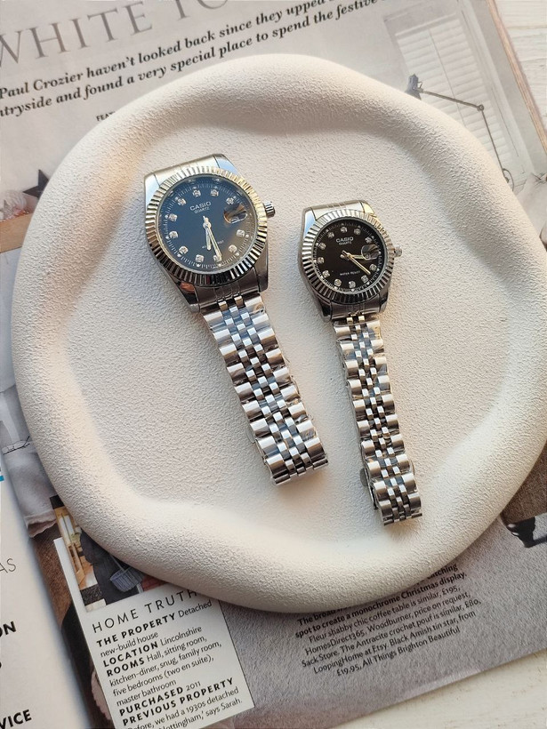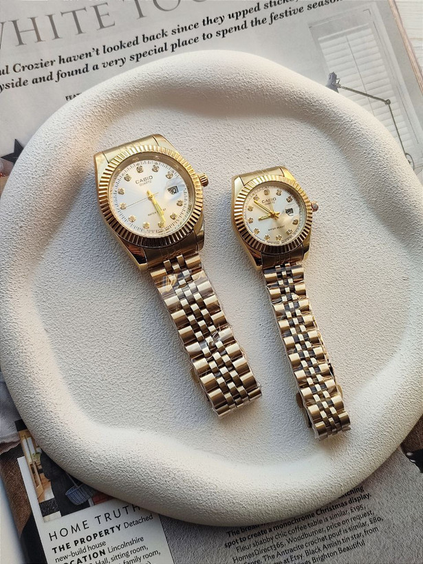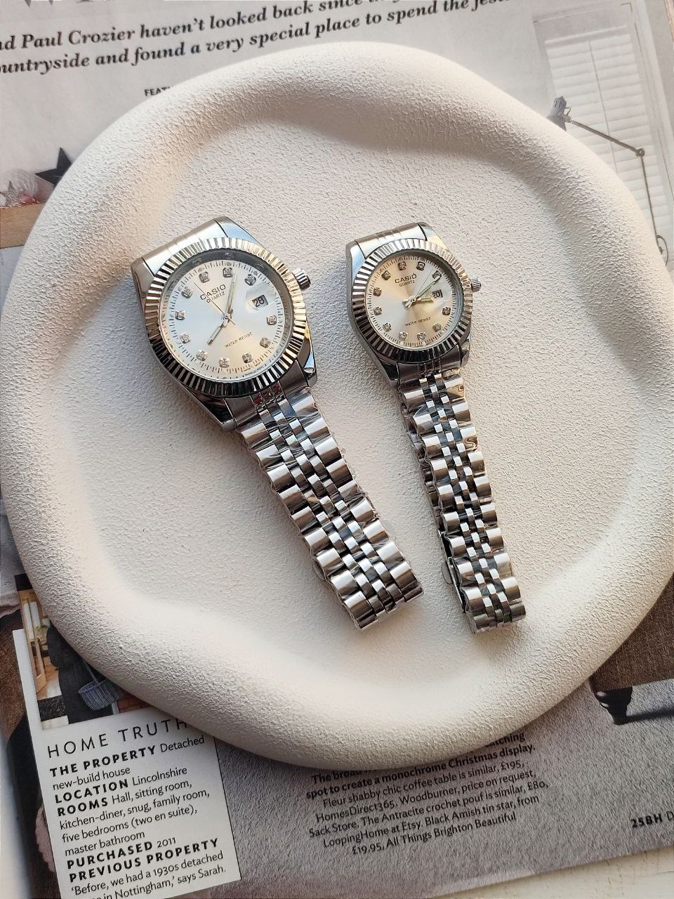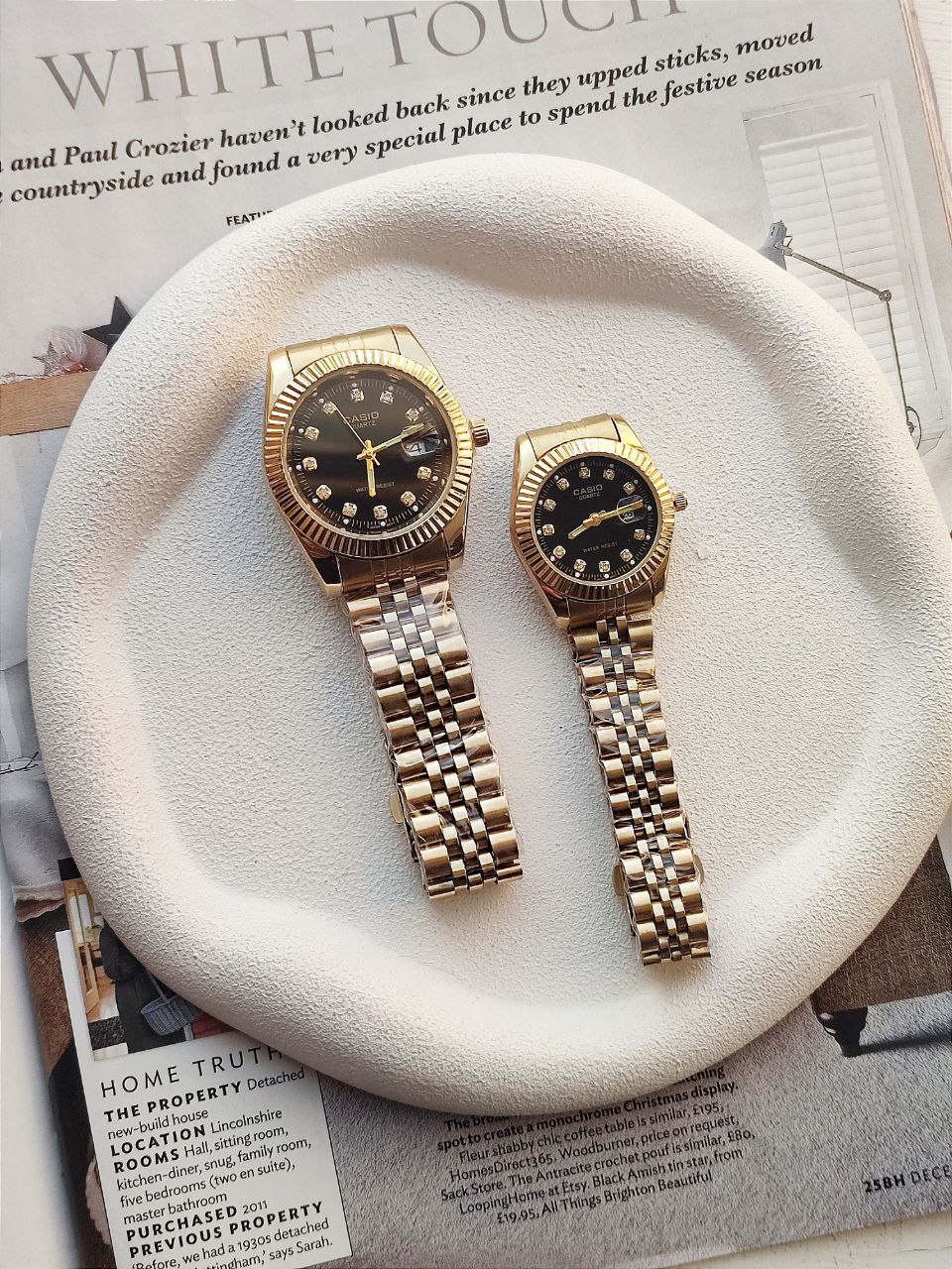 ست ساعت زنانه مردانه مارک کاسیو طرح رولکس رنگ ثابت قفل مخفی