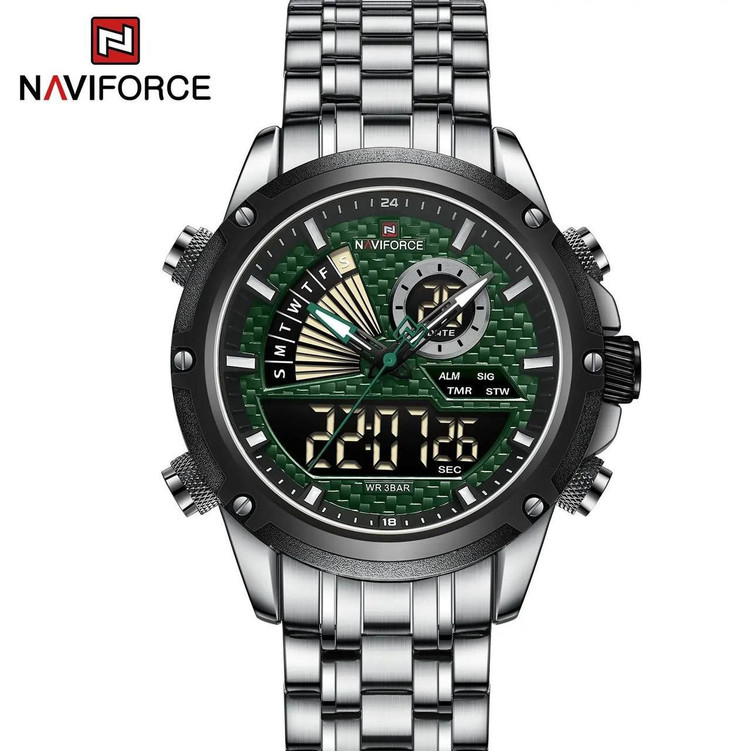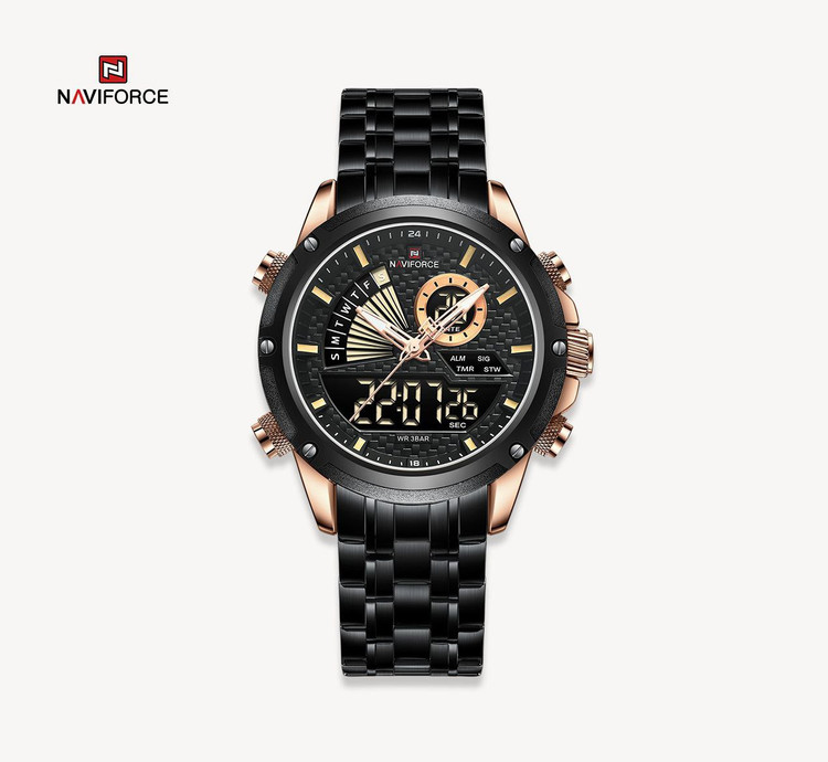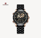 ساعت مردانه مارک ناویفورس مدلnaviforce 9205 موتور ژاپن دوزمانه چراغ دار به همراه پک کامل