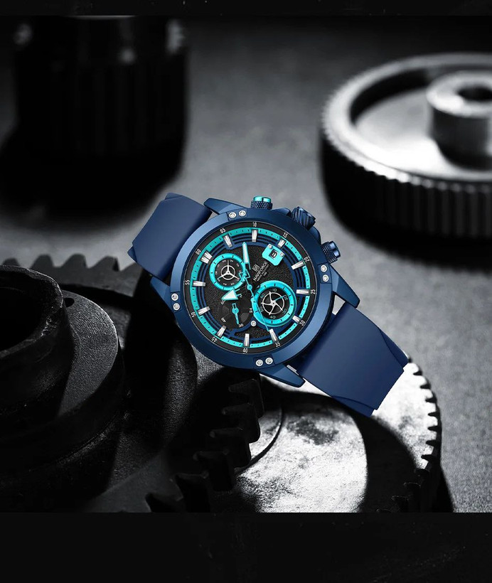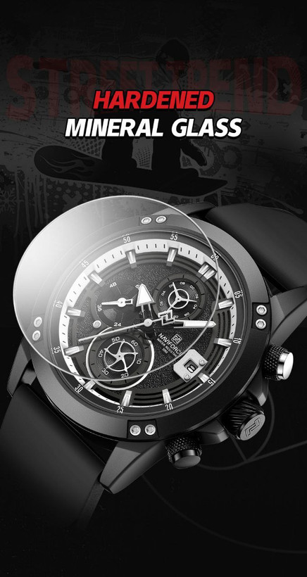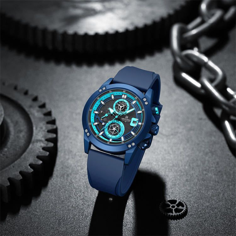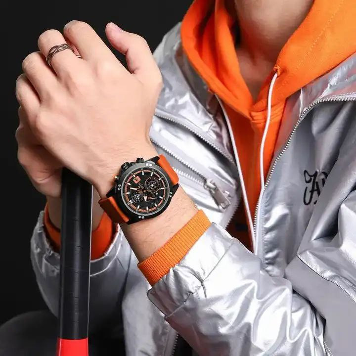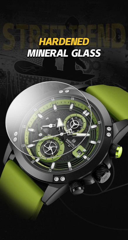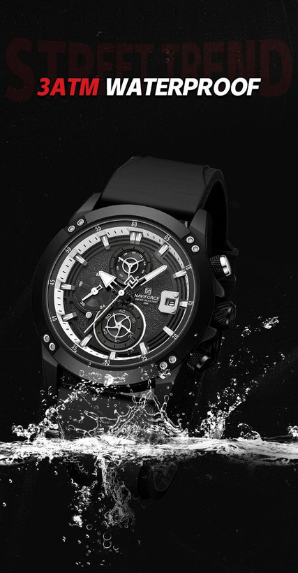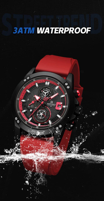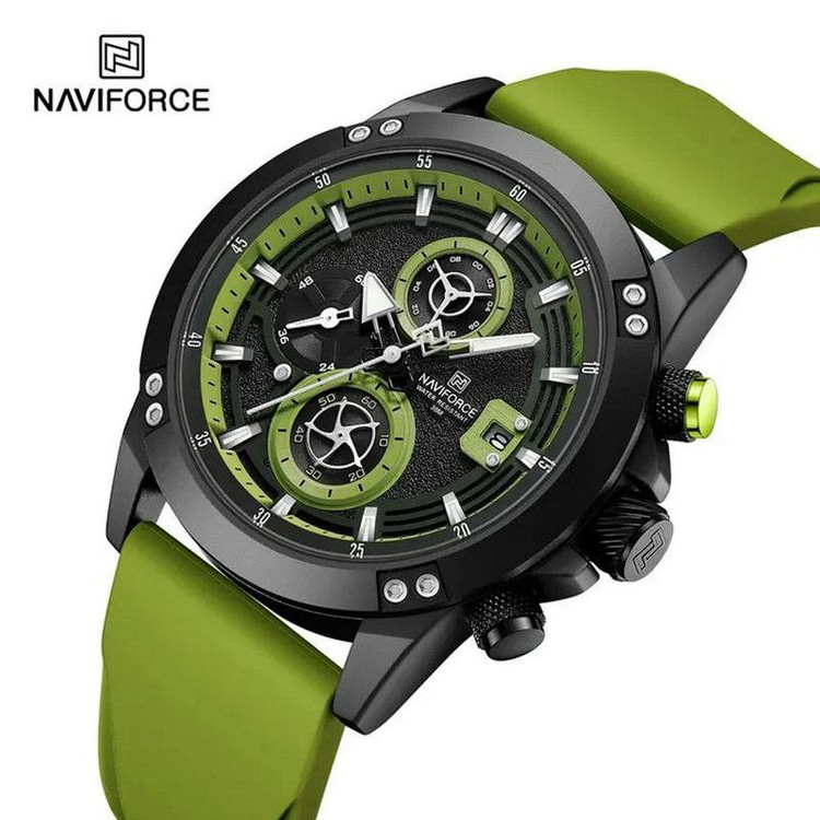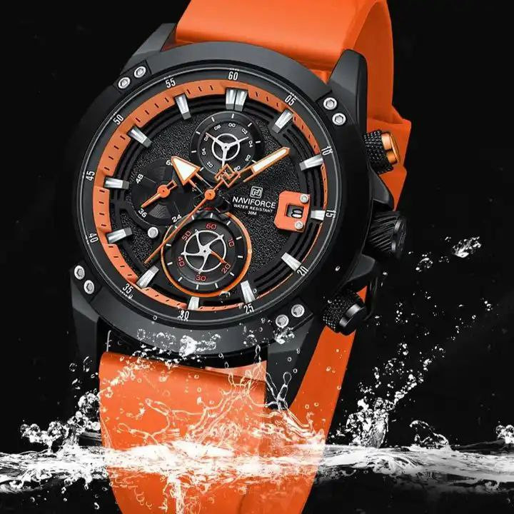 ساعت اسپورت مردانه وپسرانه مارک ناویفورس مدل naviforce8033موتور ژاپن سه موتور فعال بند پیو ضد اب به همراه پک اصلی