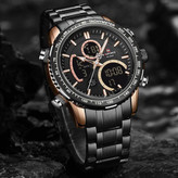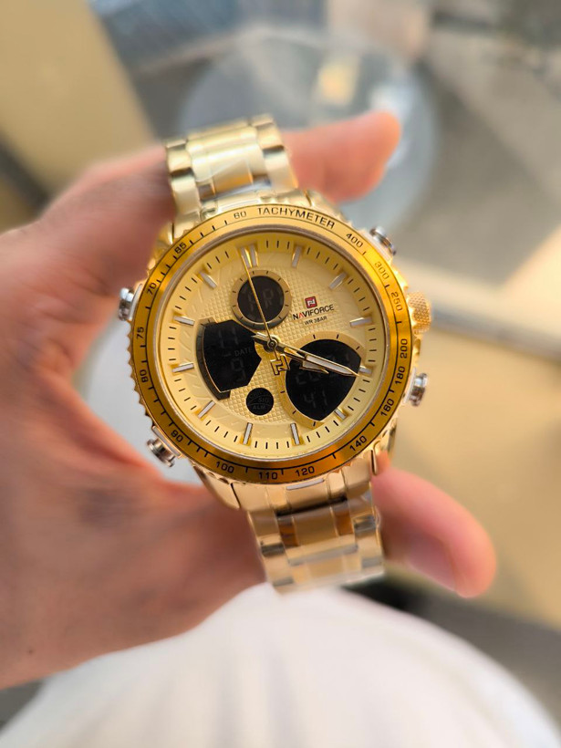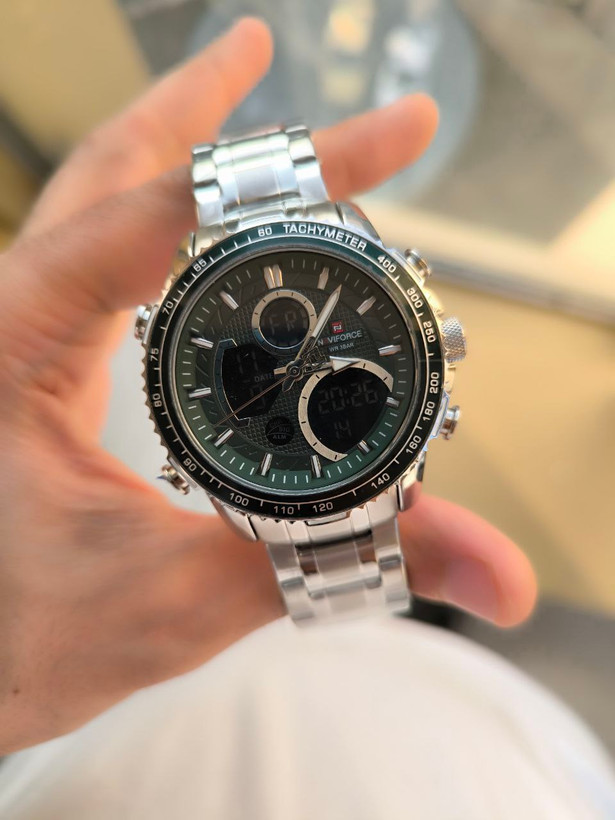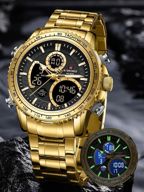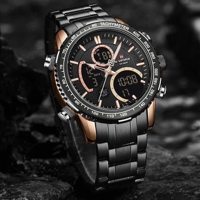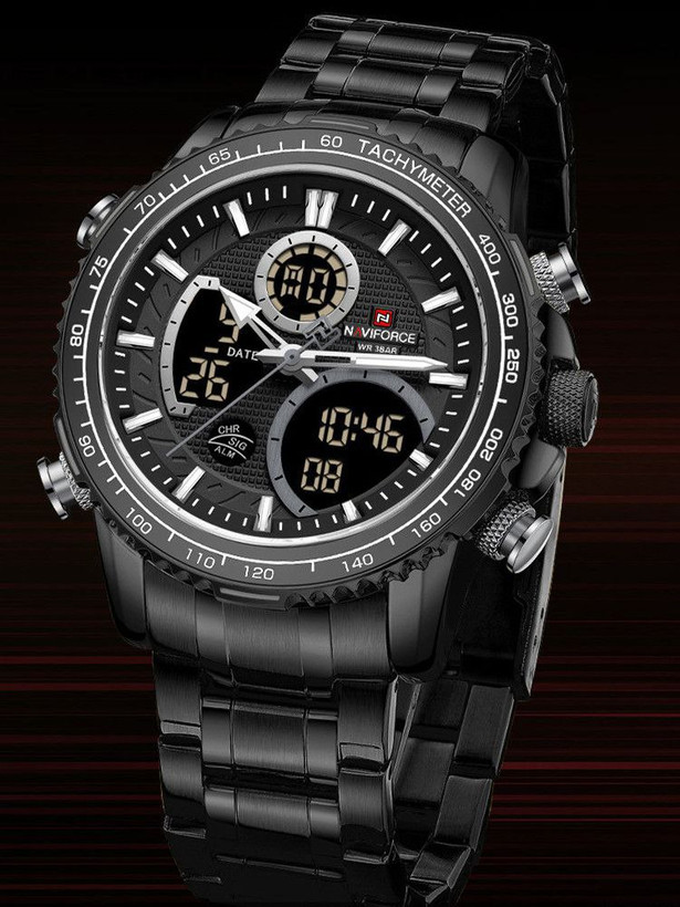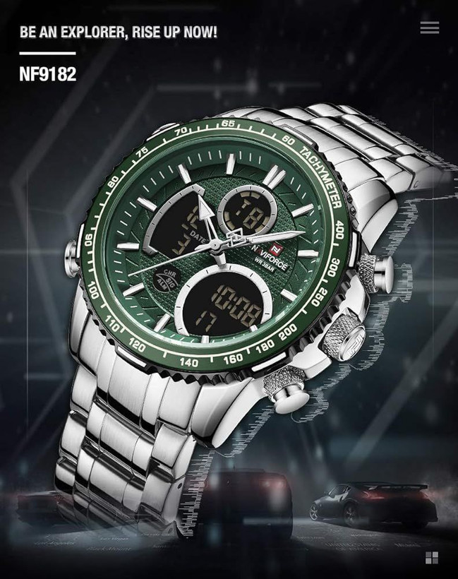 ساعت مردانه مارک ناویفورس مدل naviforce 9182 دوزمانه چراغ دار موتور ژاپن به همراه پک اصلی