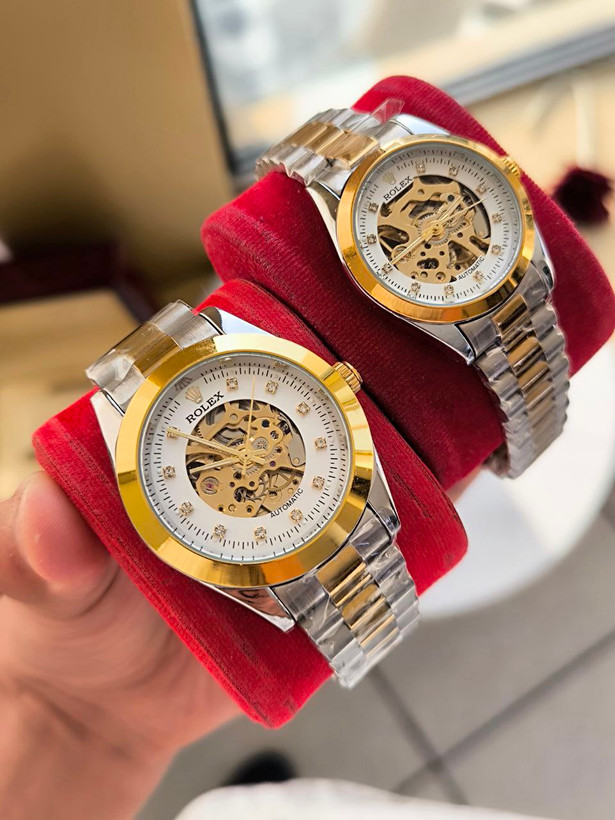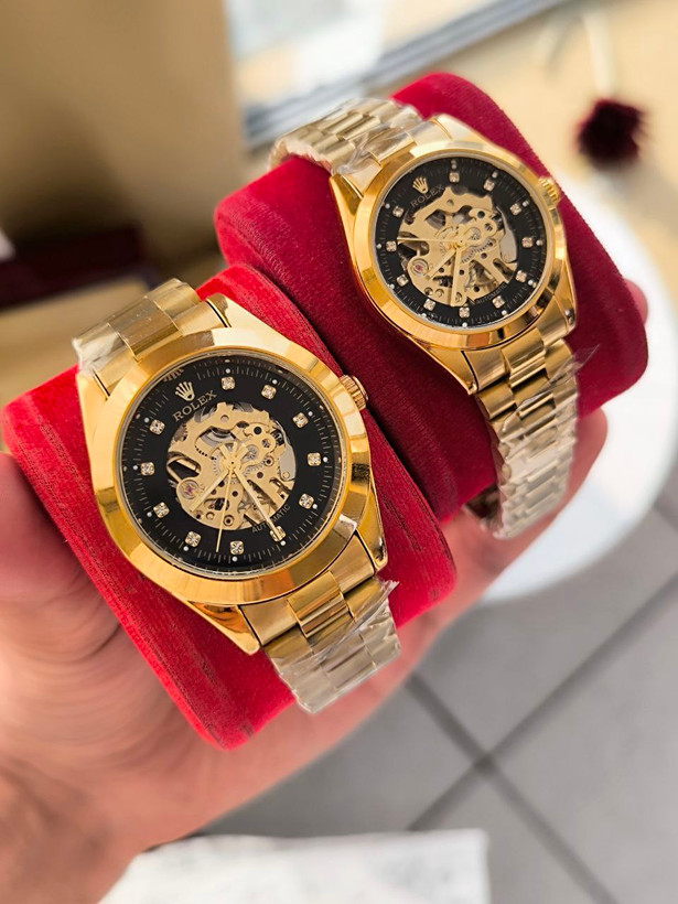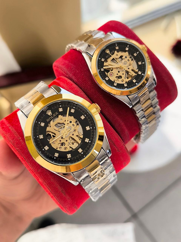 ست ساعت زنانه مردانه مارک رولکس اتوماتیک قفل اصلی پشت شیشه