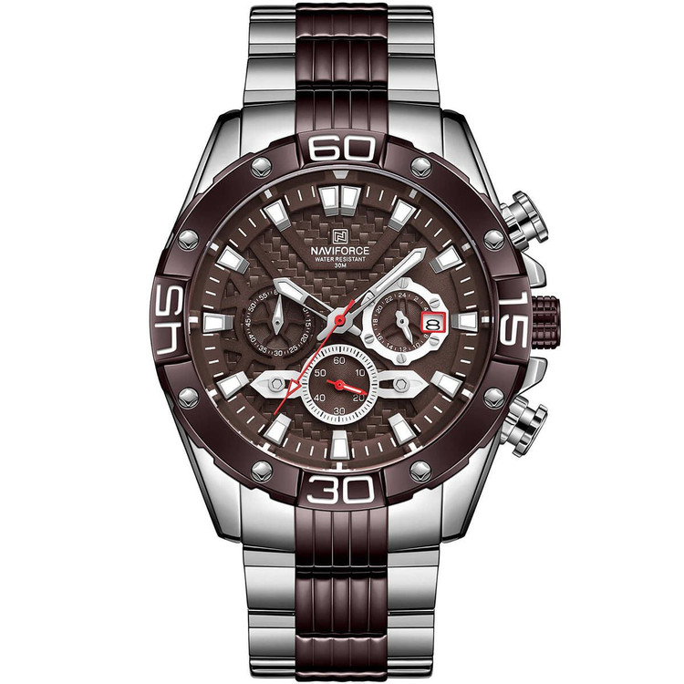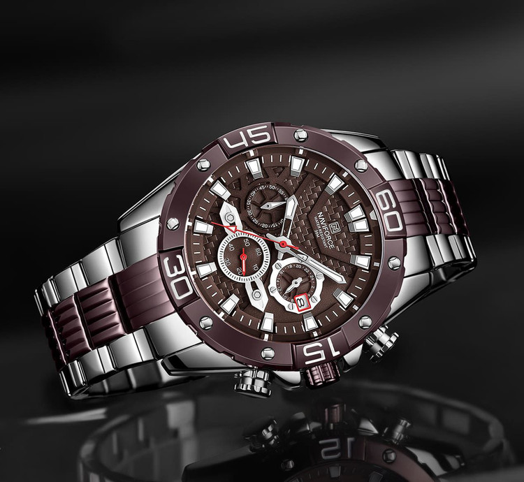 ساعت مردانه ناویفورس کد 8019موتور ژاپن بند استیل سه موتور فعال کورنو