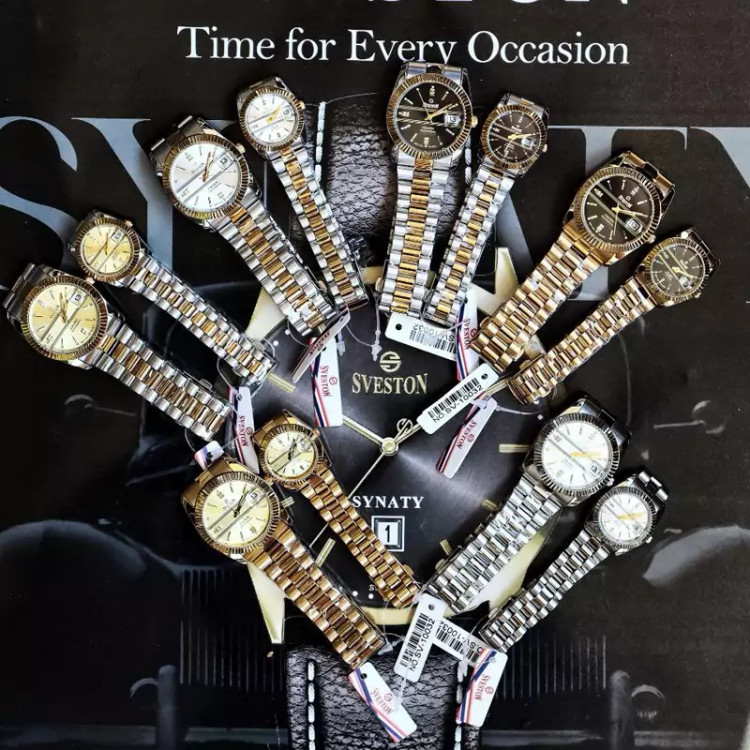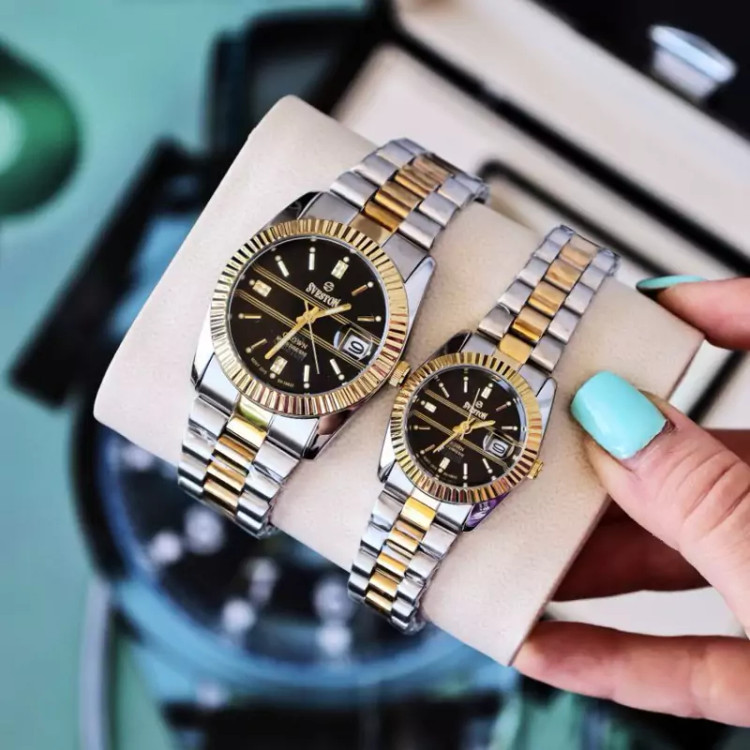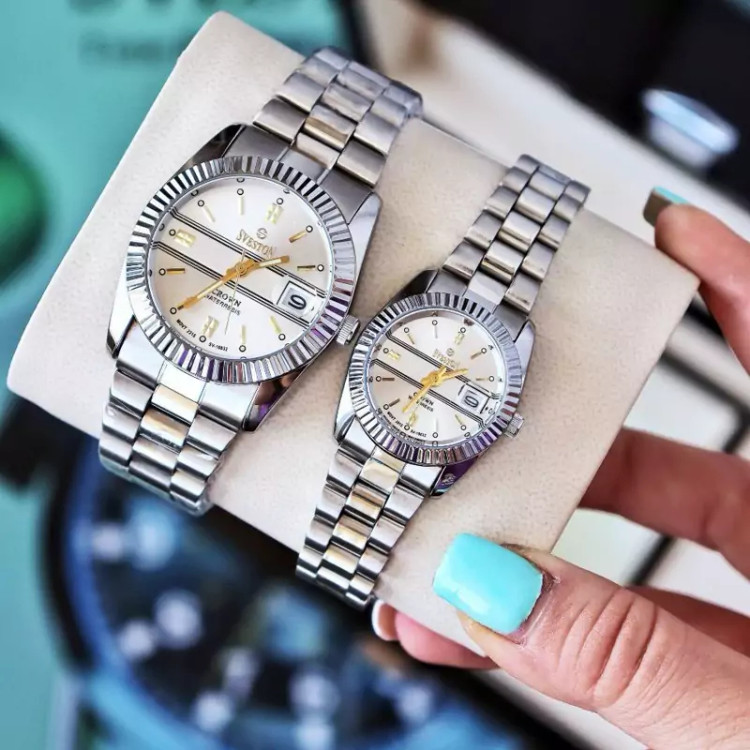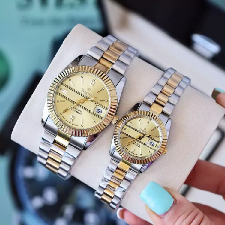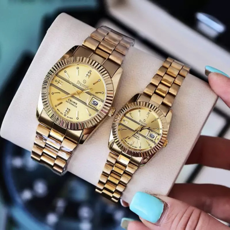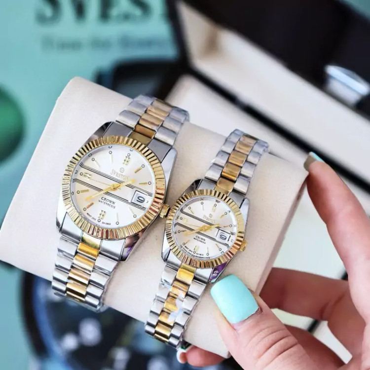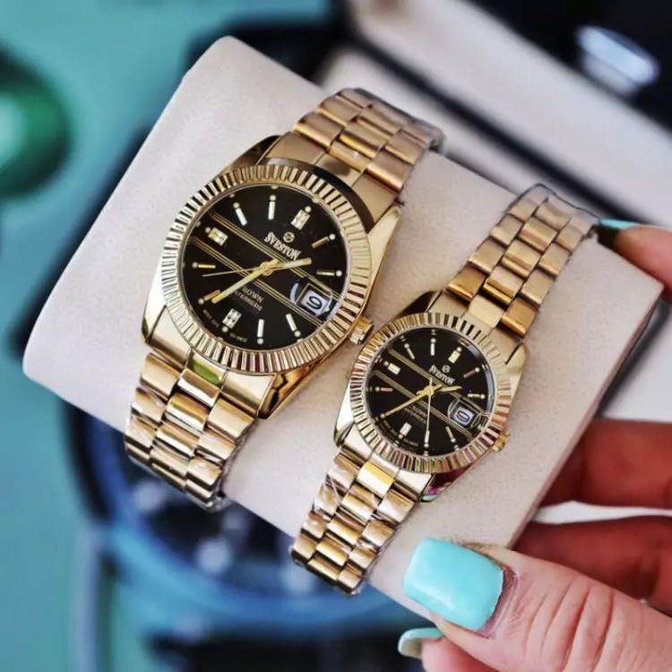 SVESTON ست ساعت سویستون a 65075012 طرح رولکس بند قفلی تاریخ دار رنگ ثابت ضد آب موتور ژاپن ست و تک زنانه و مردانه