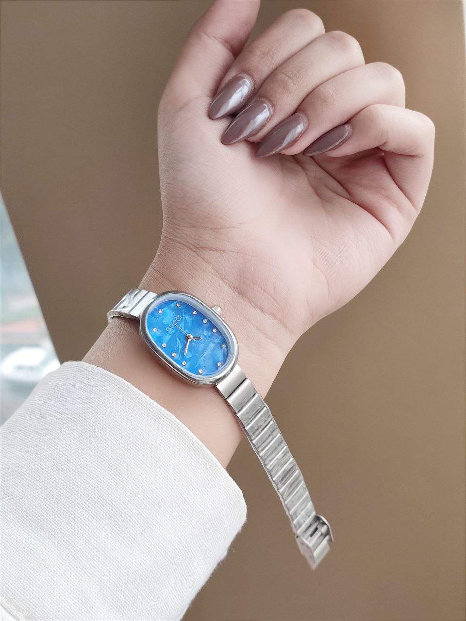 ساعت زنانه مارک گوچی بند استیل رنگ ثابت صفحه تخم مرغی