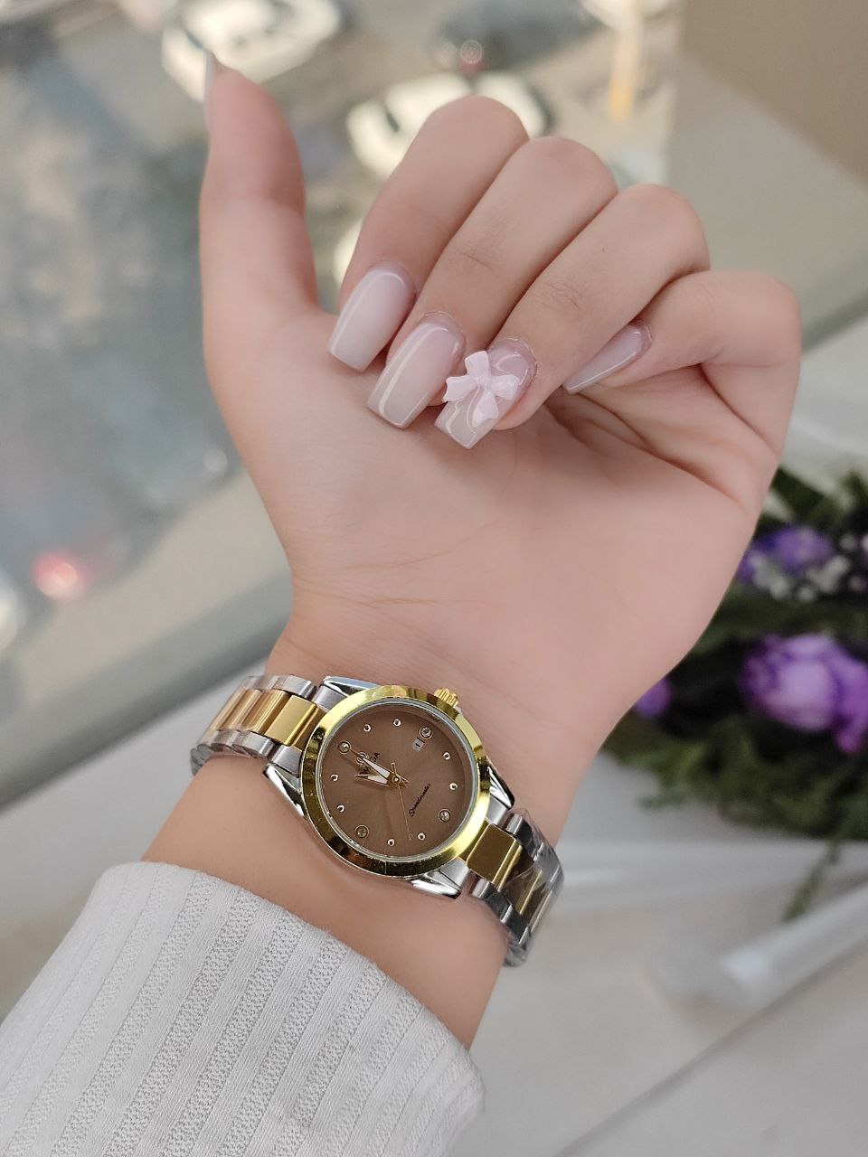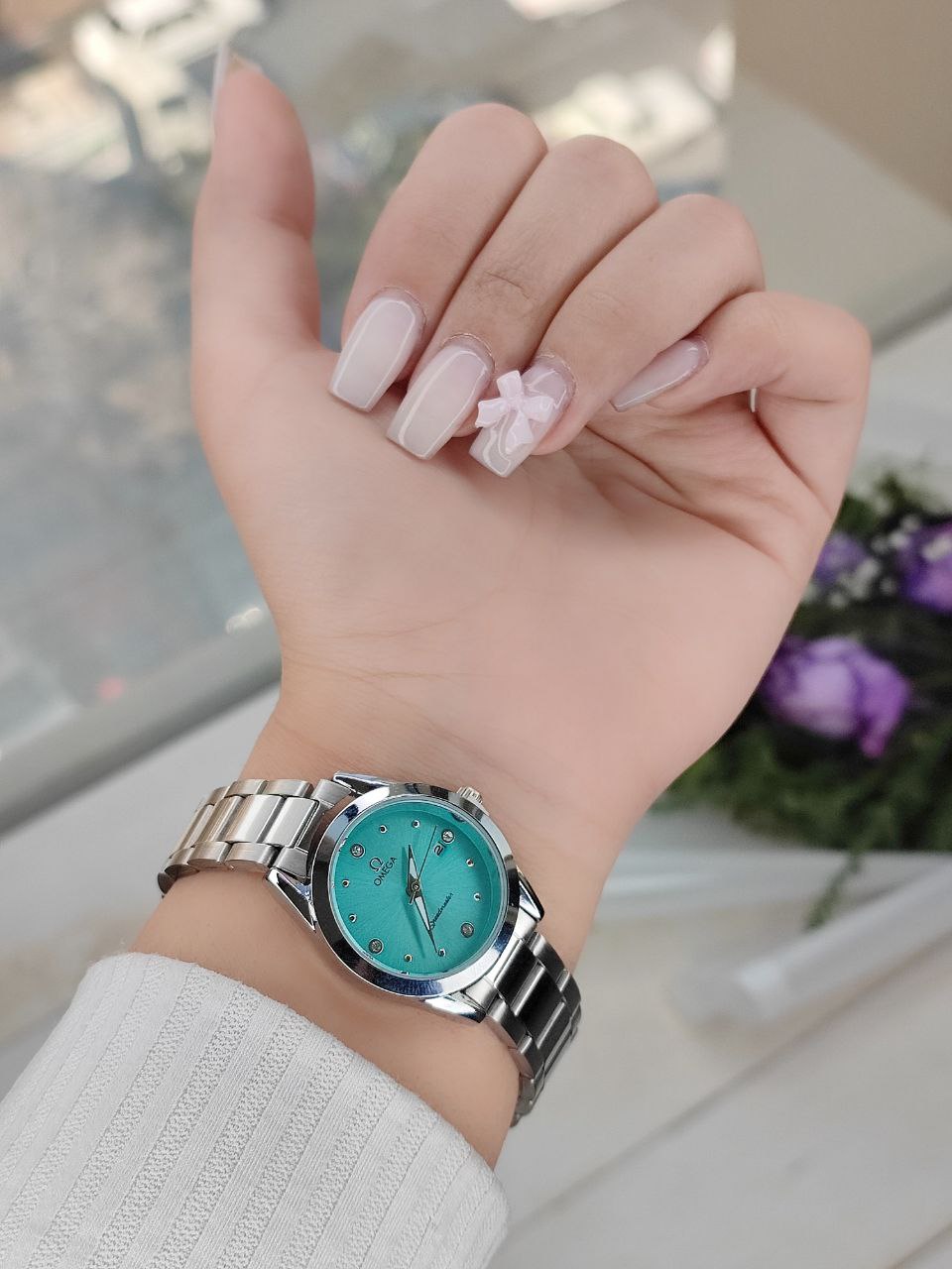 ساعت زنانه مارک اومگاOmega بند استیل رنگ ثابت قفل ضامن دار تقویم دار