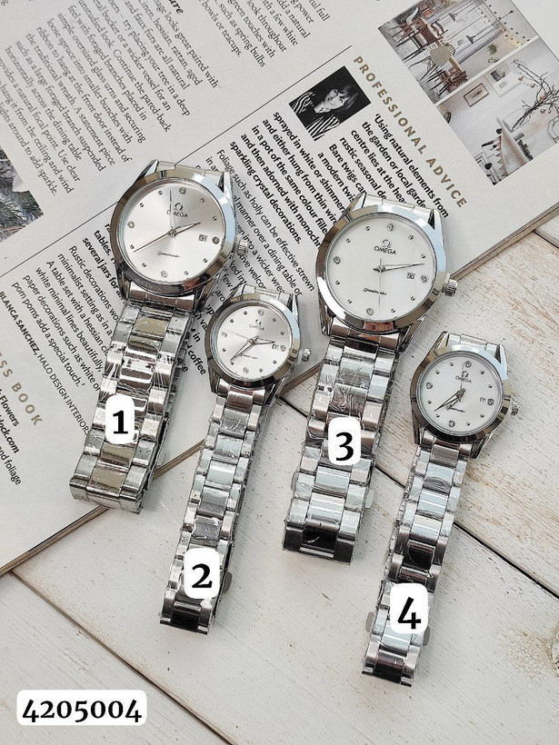 ست ساعت زنانه مردانه مارک اومگاomega بند استیل رنگ ثابت تقویم دار