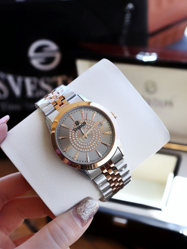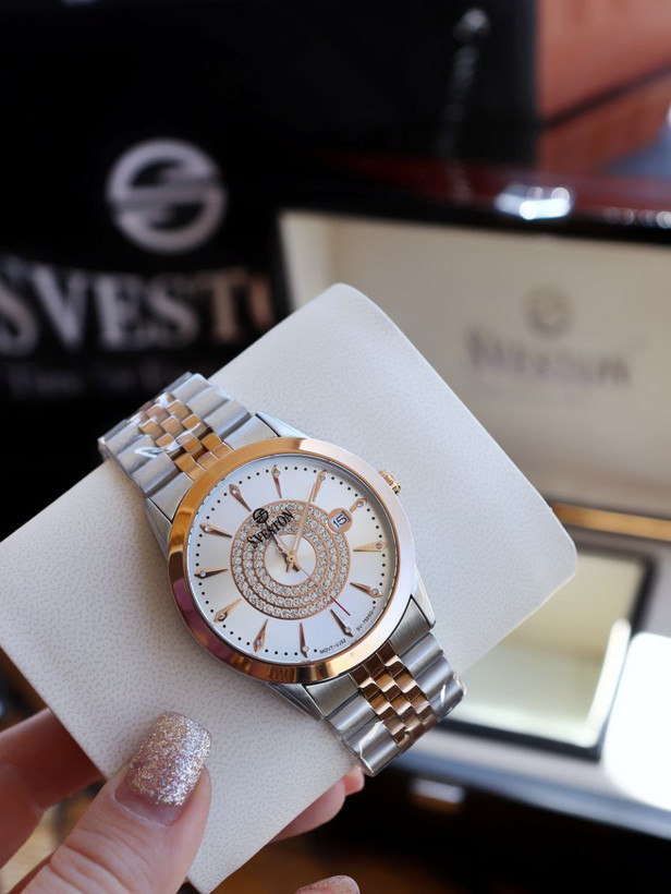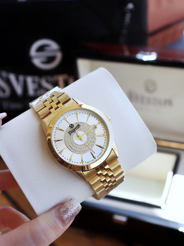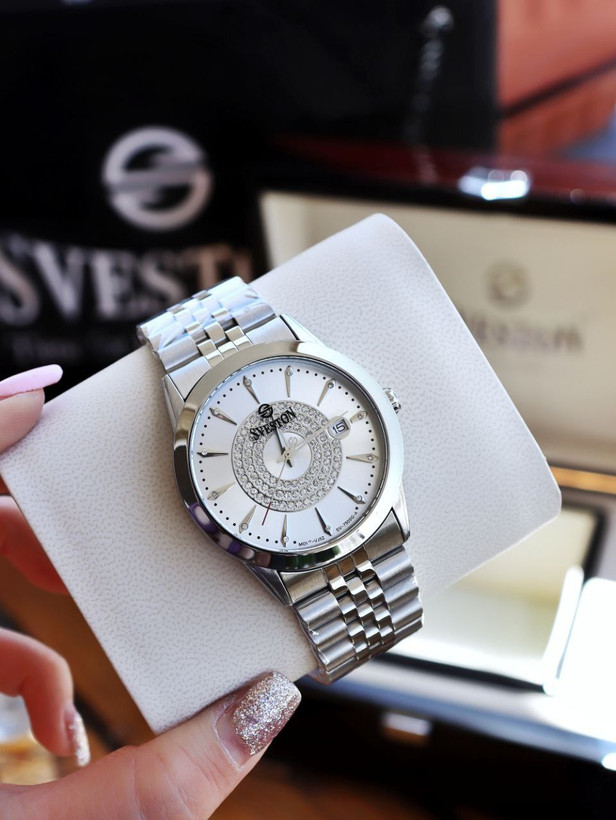 ساعت مردانه مارک سویستون رنگ ثابت تقویم دار موتور ژاپن ضداب وسط نگینی SVESTON