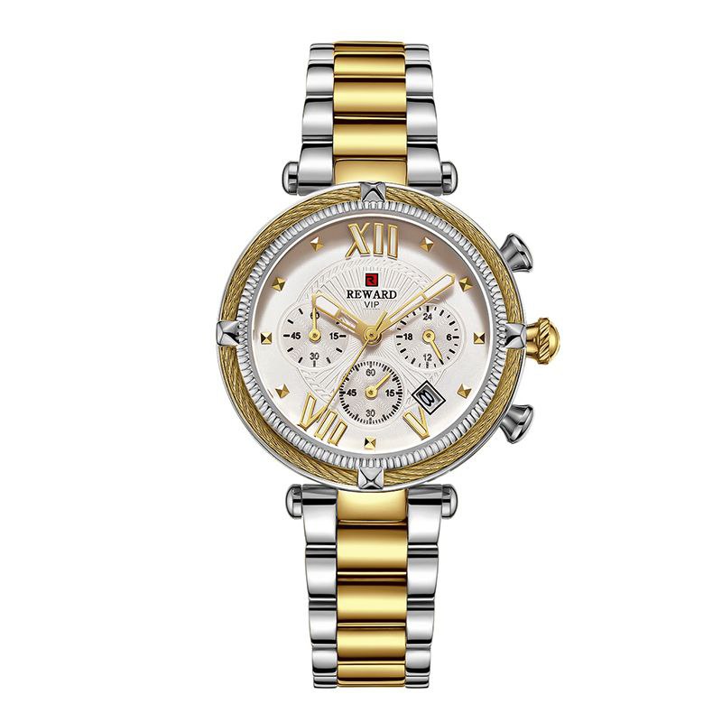 ساعت زنانه سه موتور فعال بند استیل رنگ ساعت تقویم دار مارک ریوارد مدل REVARD63084