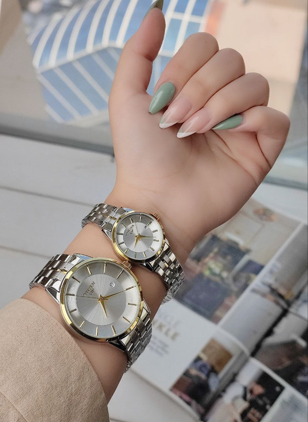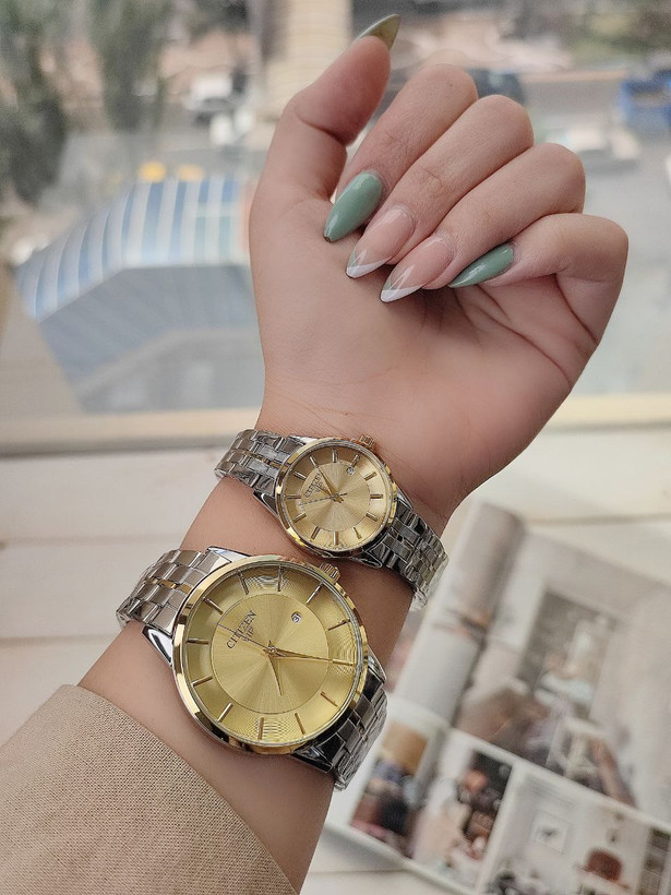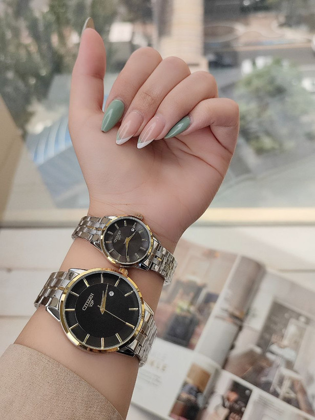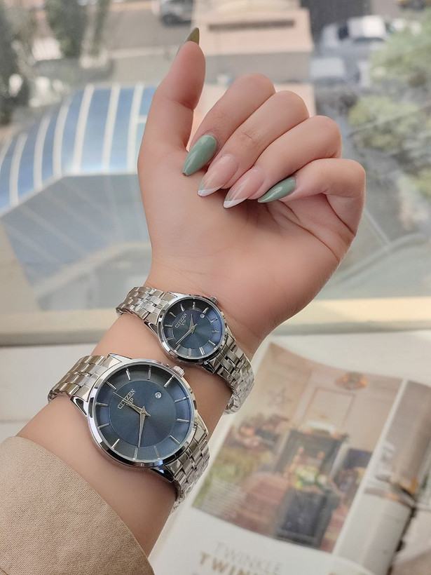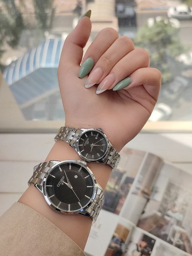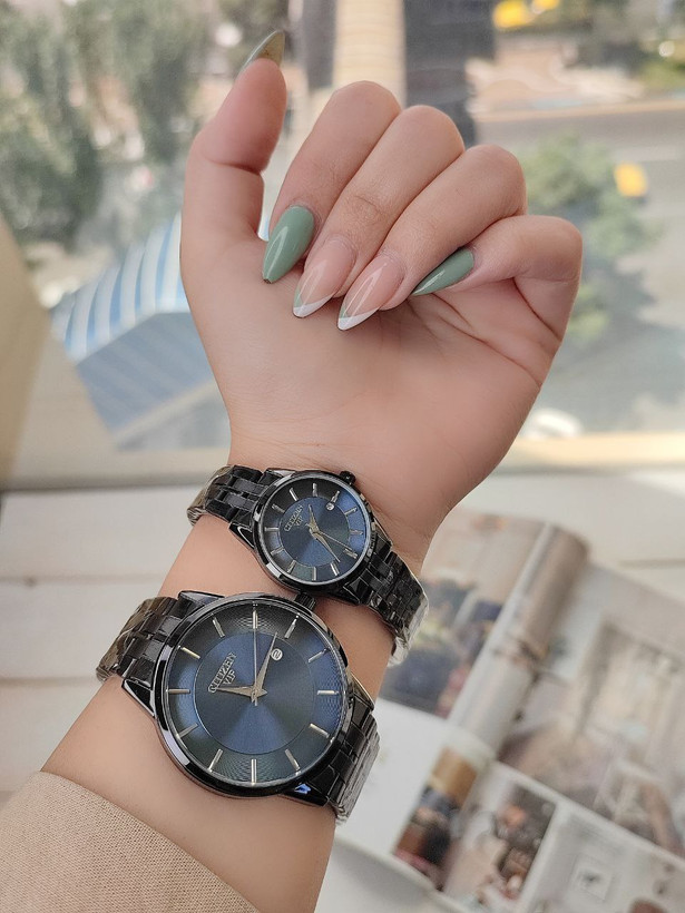 ست ساعت زنانه مردانه مارک سیتیزن بند استیل رنگ ثابت قفل کلیپسی