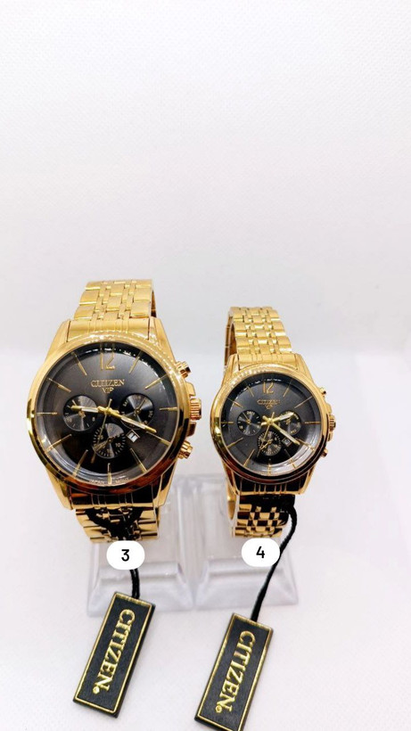 ست ساعت زنانه مردانه سیتیزن vip بند استیل توپر موتور ژاپن سیکو نمایشگر تاریخ مقاوم در برابر اب