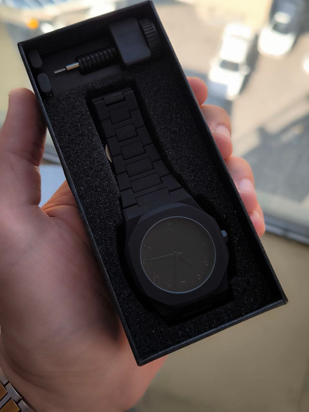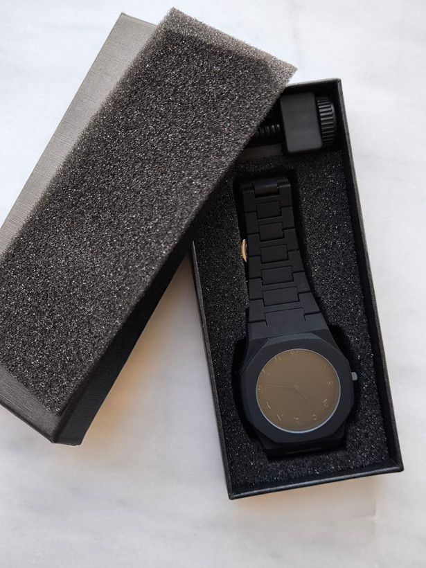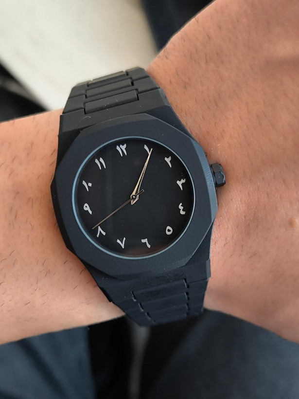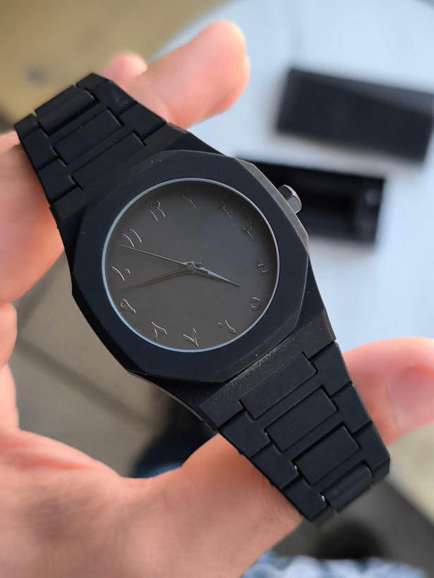 ساعت مردانه شیک با طراحی مشکی مات و اعداد عربی.