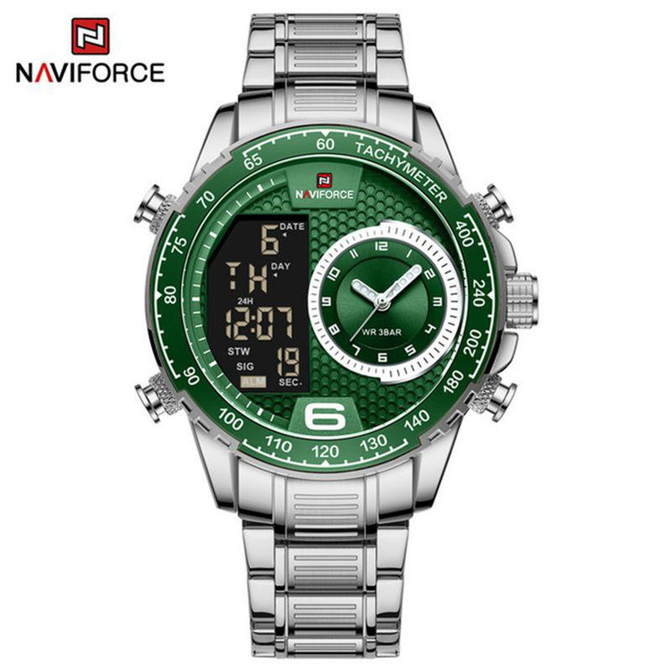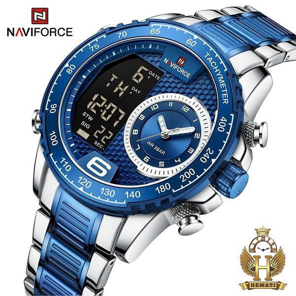 ساعت مردانه مارک ناویفورس مدل naviforce 9199موتور ژاپن بنداستیل ضد اب تقویم دار چراغ دار اورجینال به همراه پک کامل