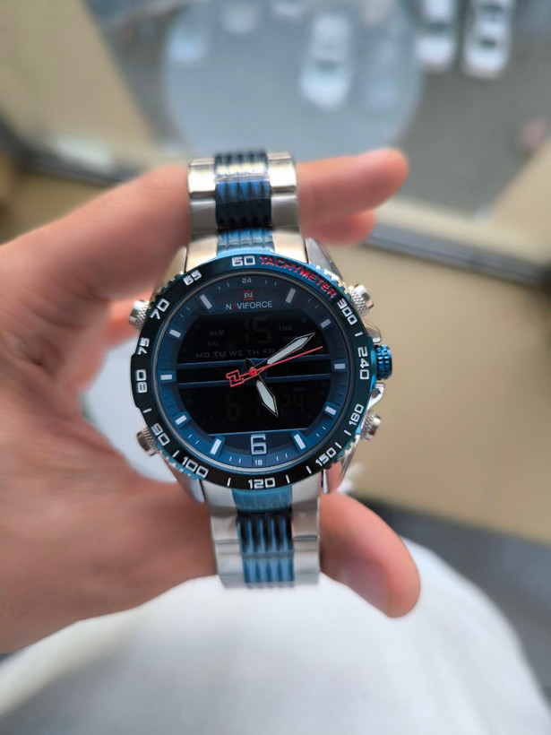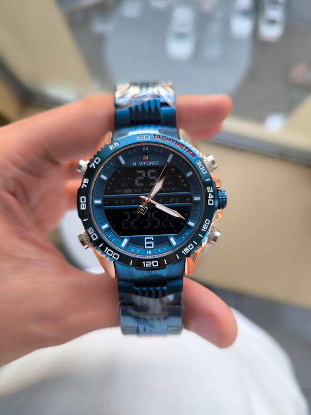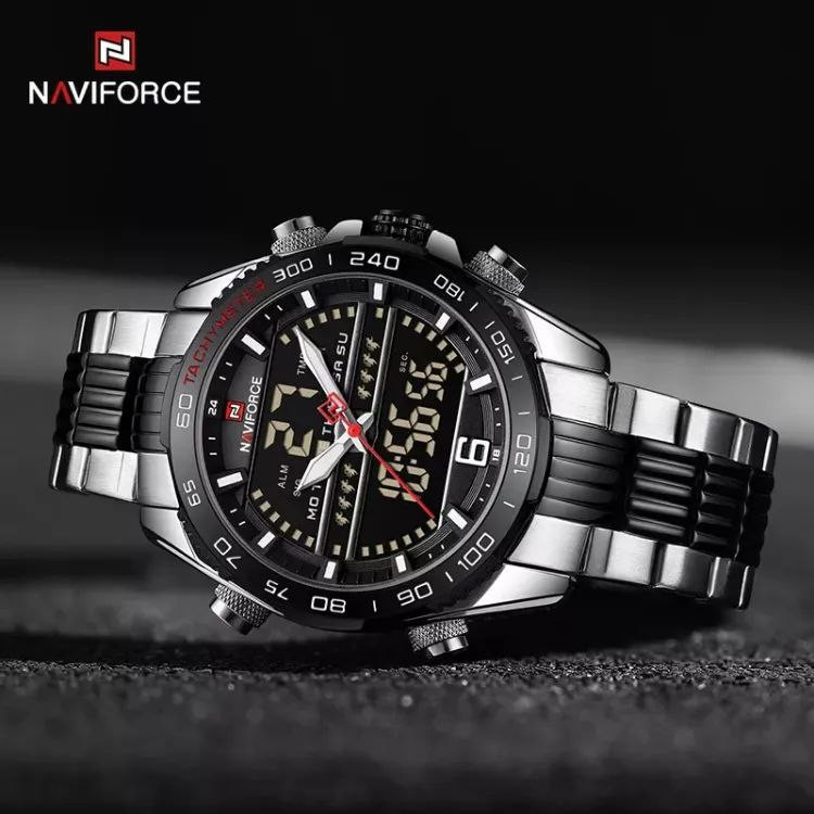 ساعت مردانه مارک ناویفورس مدل naviforce 9195دوزمانه چراغ دار رنگ ثابت ضد اب بند استیل ضد حساسیت موتور ژاپن به همراه پک کامل