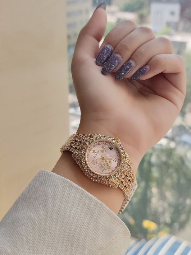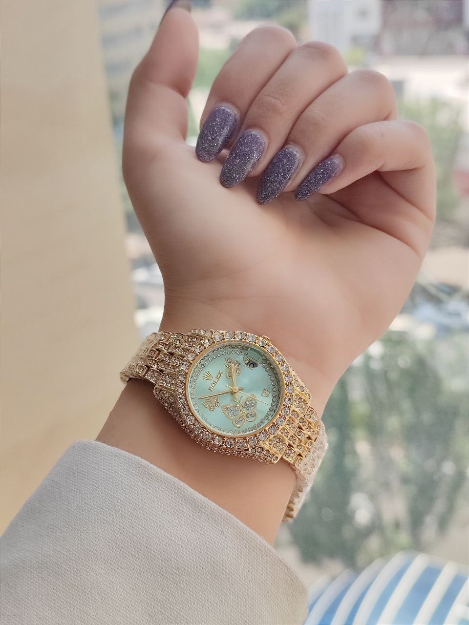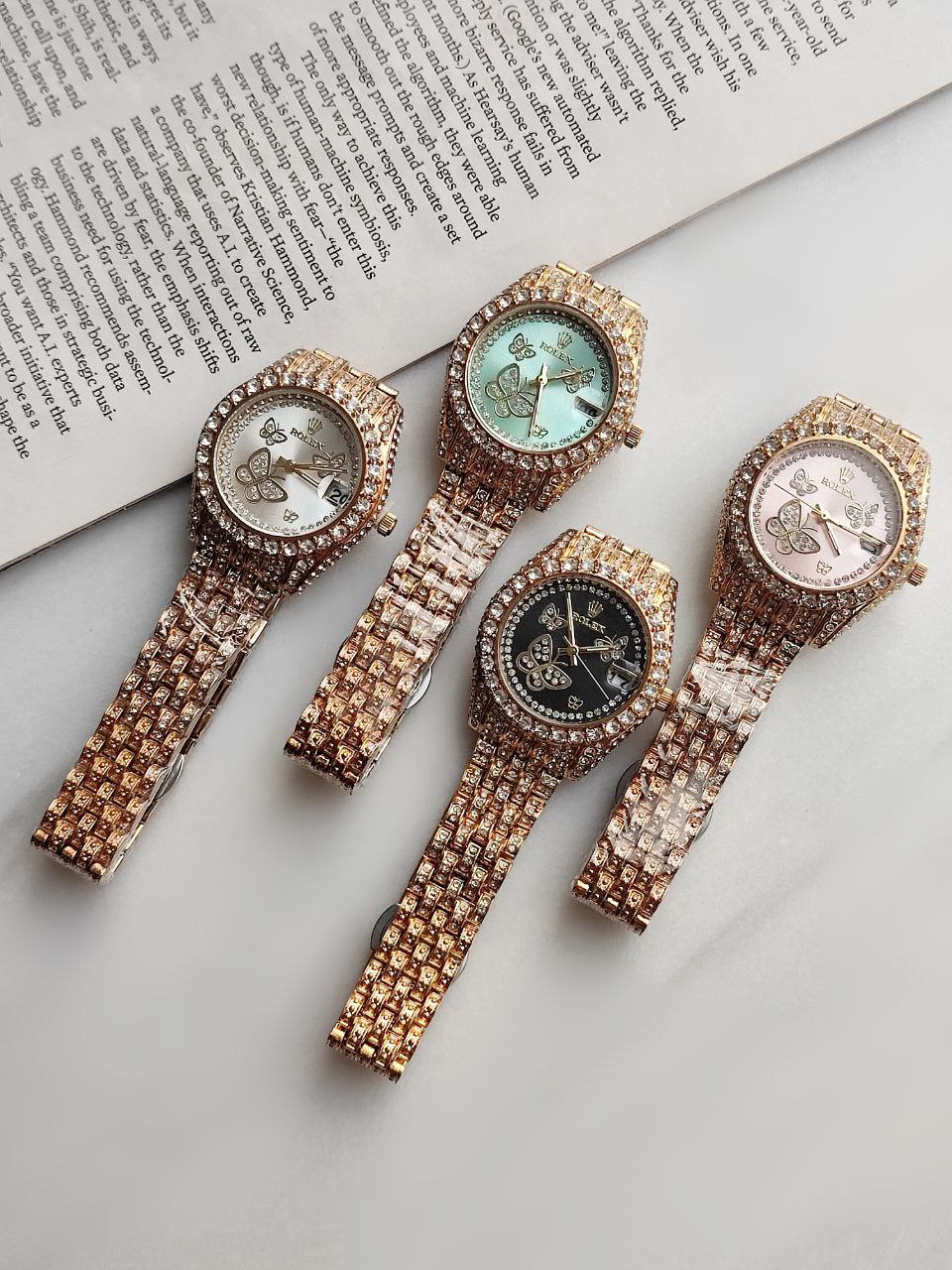 ساعت زنانه لوکس با طراحی نگیندار و رنگهای متنوع.