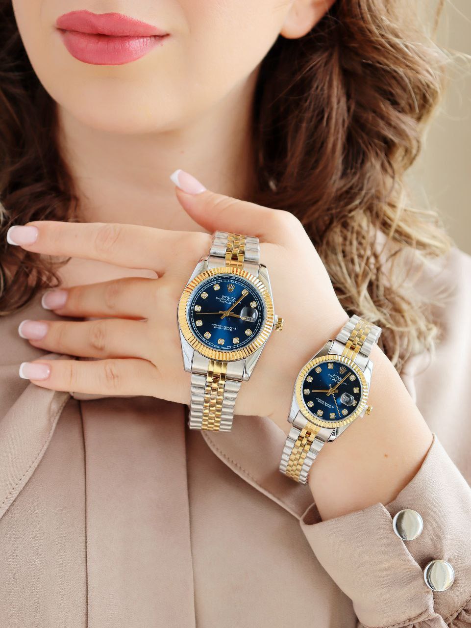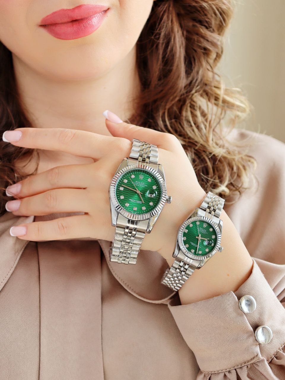 ست ساعت زنانه مردانه مارک رولکس طرح ارام گرد اتومات