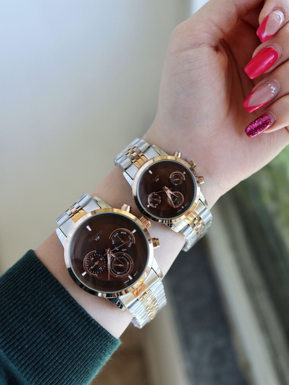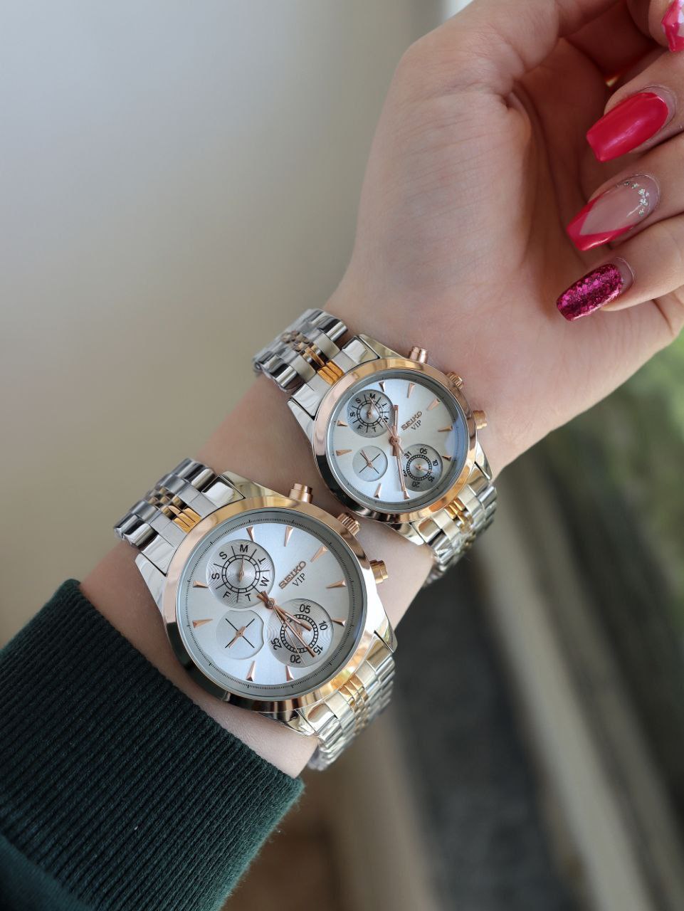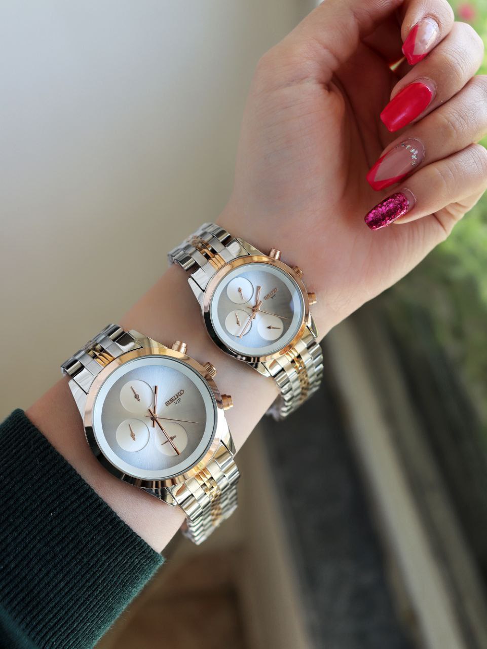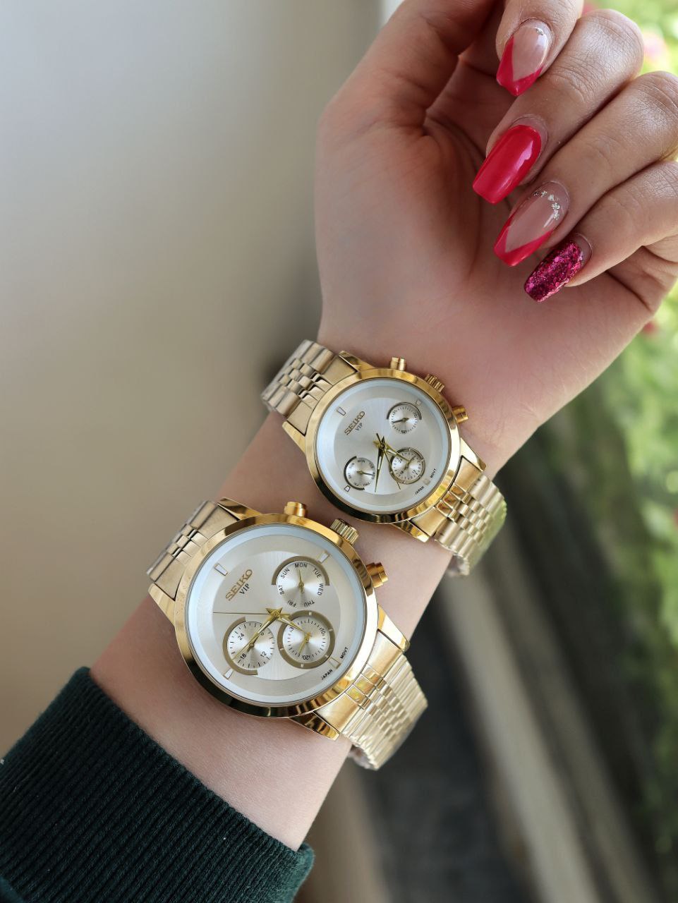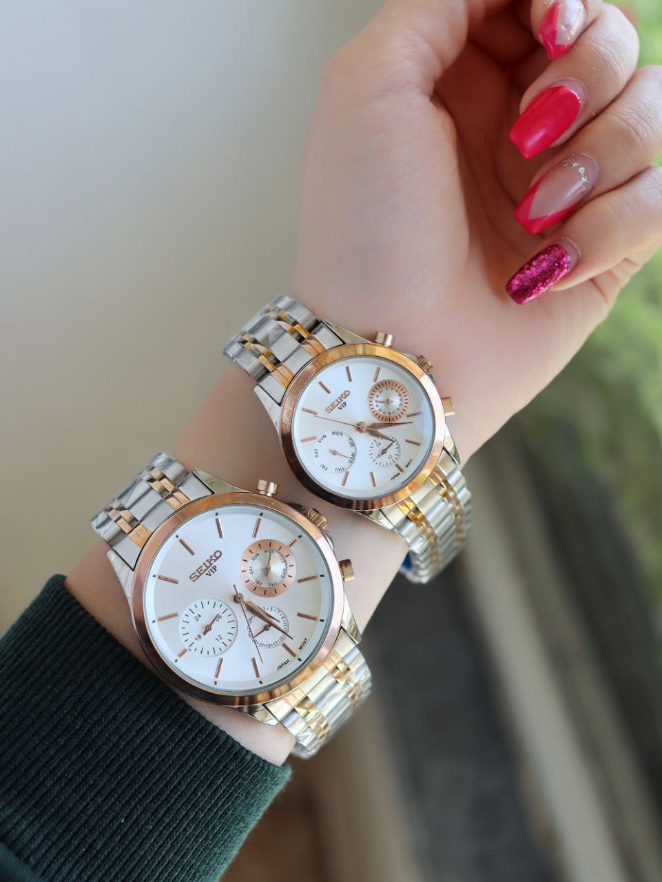 SEIKO ست ساعت مردانه زنانه سیکو a 1400170020 فول تایم بند قفلی رنگ ثابت موتور ژاپن ضد اب ❌️فروش بصورت ست❌️