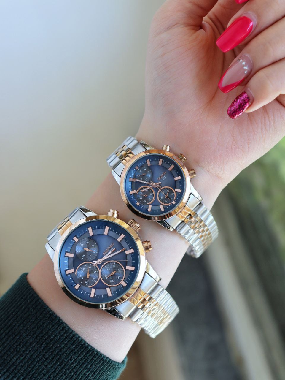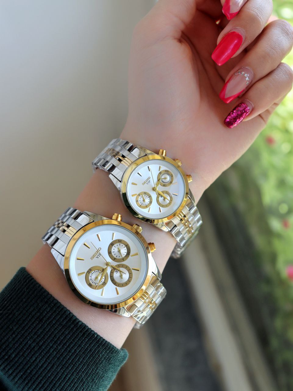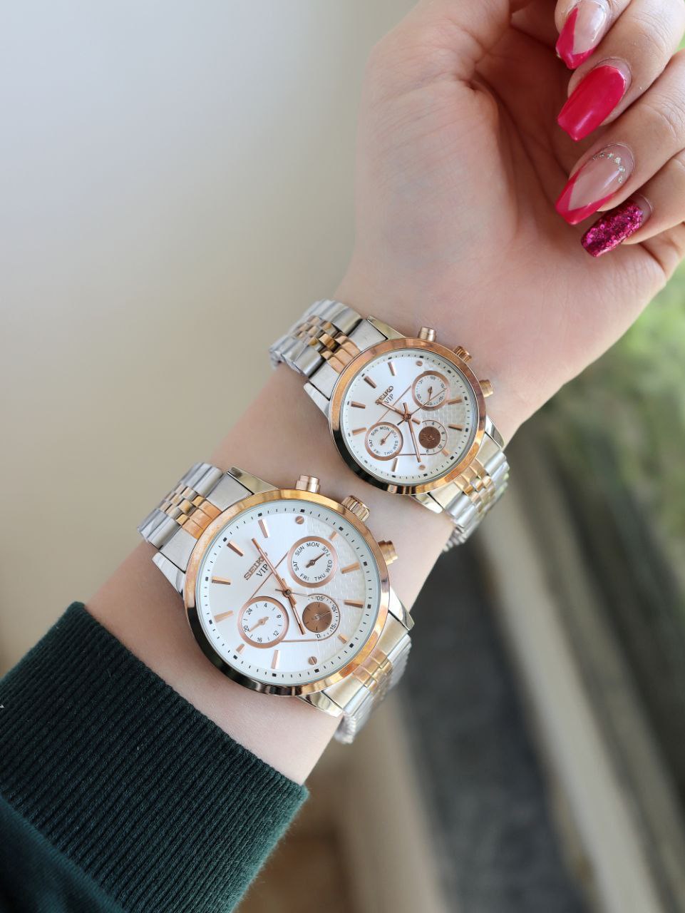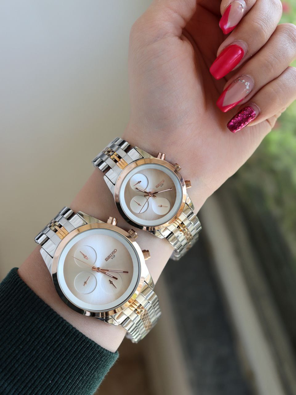 SEIKO ست ساعت مردانه زنانه سیکو a 1400170020 فول تایم بند قفلی رنگ ثابت موتور ژاپن ضد اب ❌️فروش بصورت ست❌️