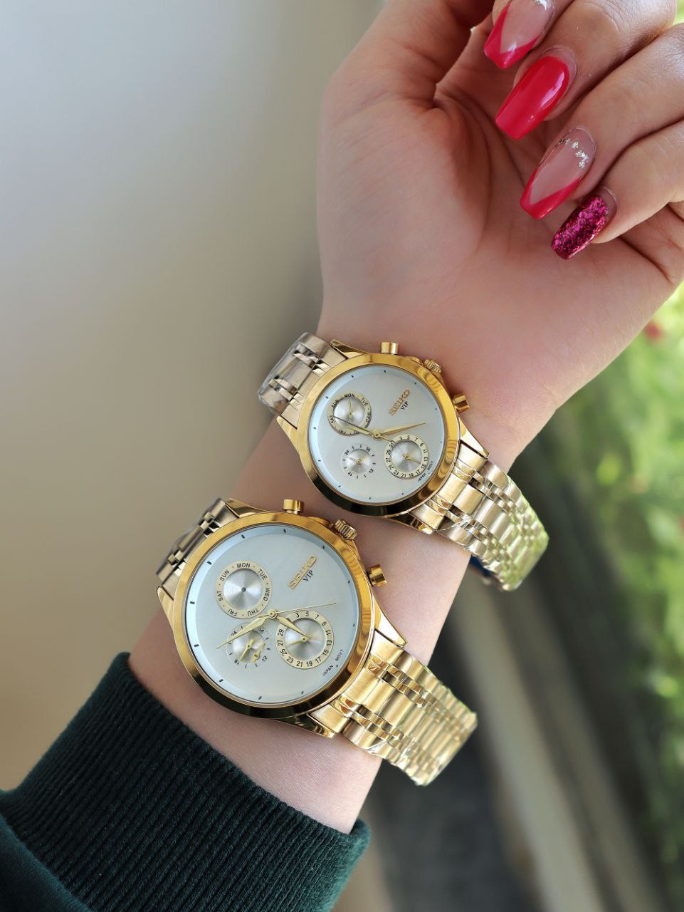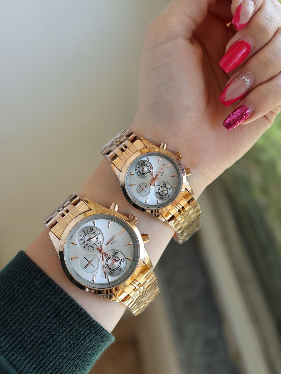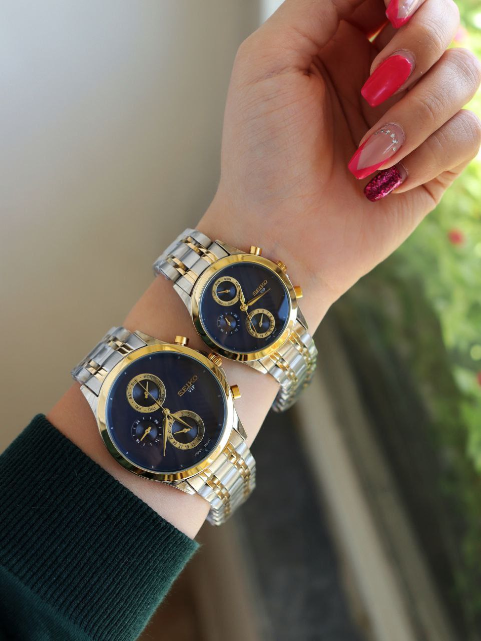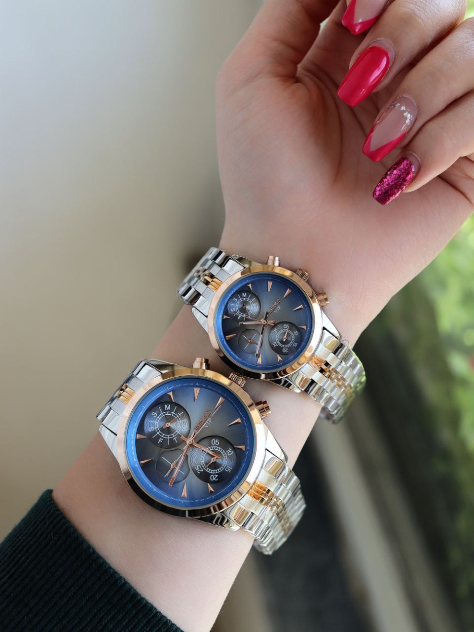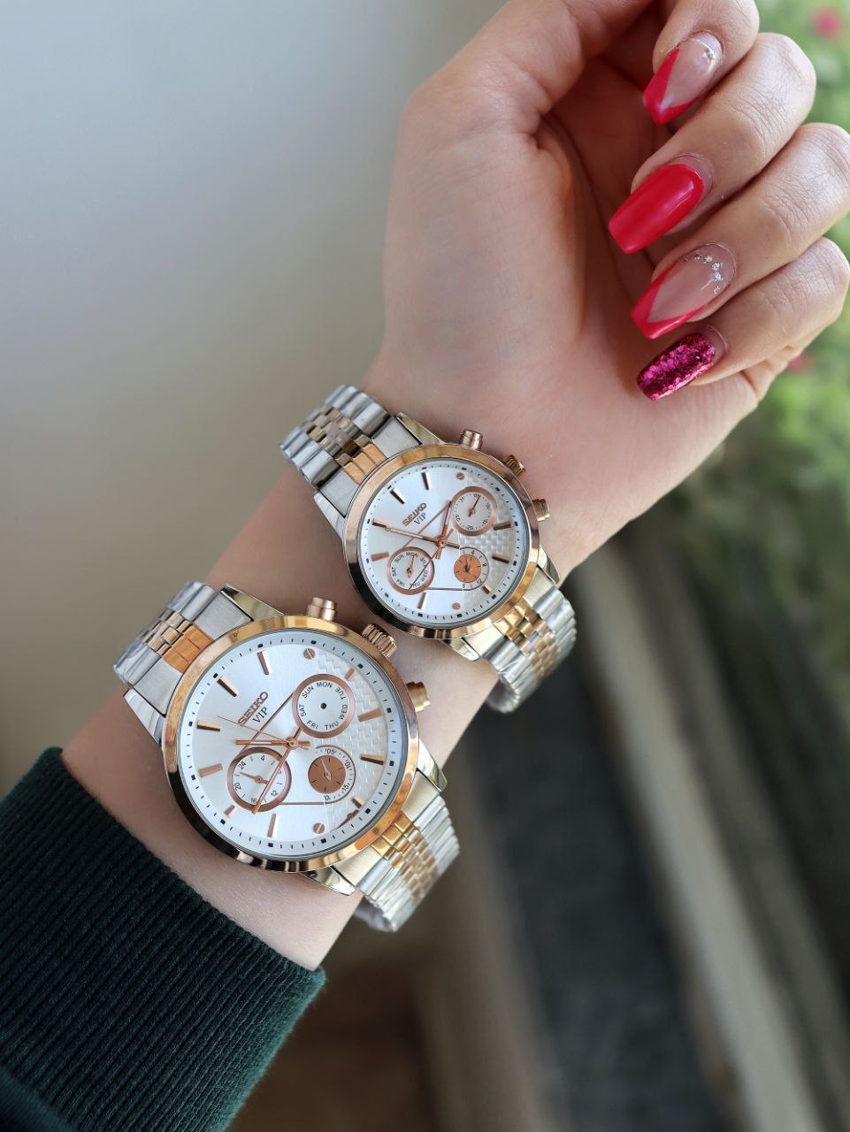 SEIKO ست ساعت مردانه زنانه سیکو a 1400170020 فول تایم بند قفلی رنگ ثابت موتور ژاپن ضد اب ❌️فروش بصورت ست❌️