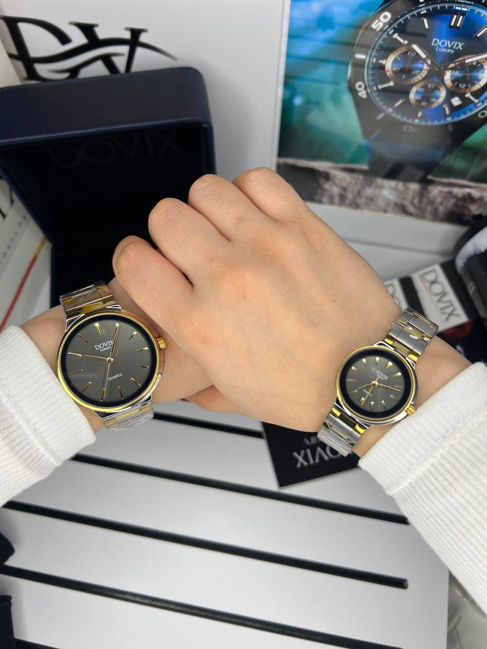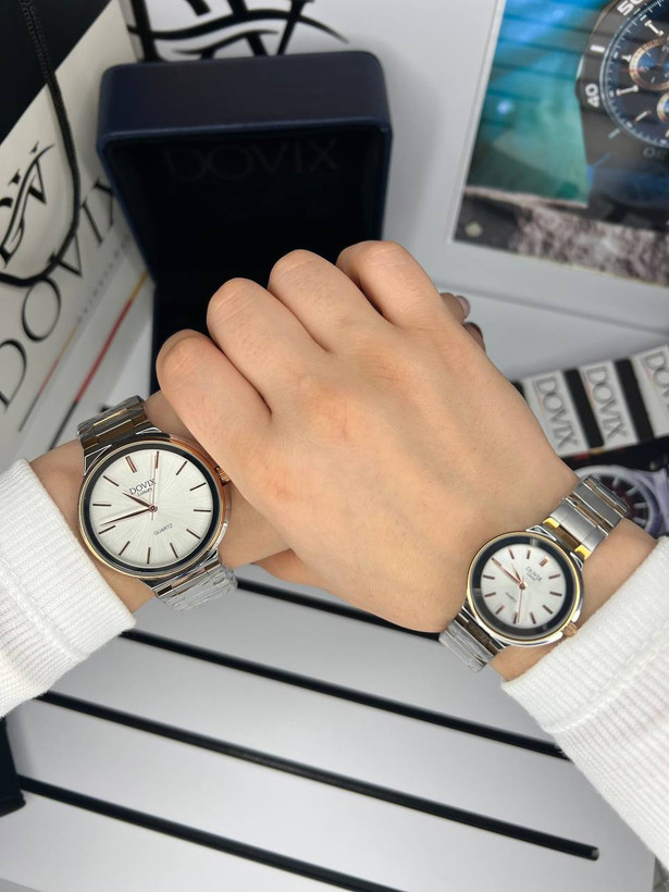 ست ساعت زنانه مردانه اورجینال صفحه گرد برند معروف المانی داویکس مدلDVC24039.7.6 ⌚️Dovix luxury original Model: DVL24039.7silver Model: DVL24039.6black ویژگی های محصول بند استیل رنگ ثابت 316 بند طرح امگا موتور ژاپنی با ضمانت 12ماهه شرکتی قفل مخفی کلیپسی فول استیل مقاومت در برابر اب تا عمق 3atm شیشه ضد خش رفلکس برند معروف المانی Dovix به همراه 12ماه گارانتی شرکتی وپنج سال خدمات پس از فروش به همراه جعبه وپک وکارت گارانتی مخصوص