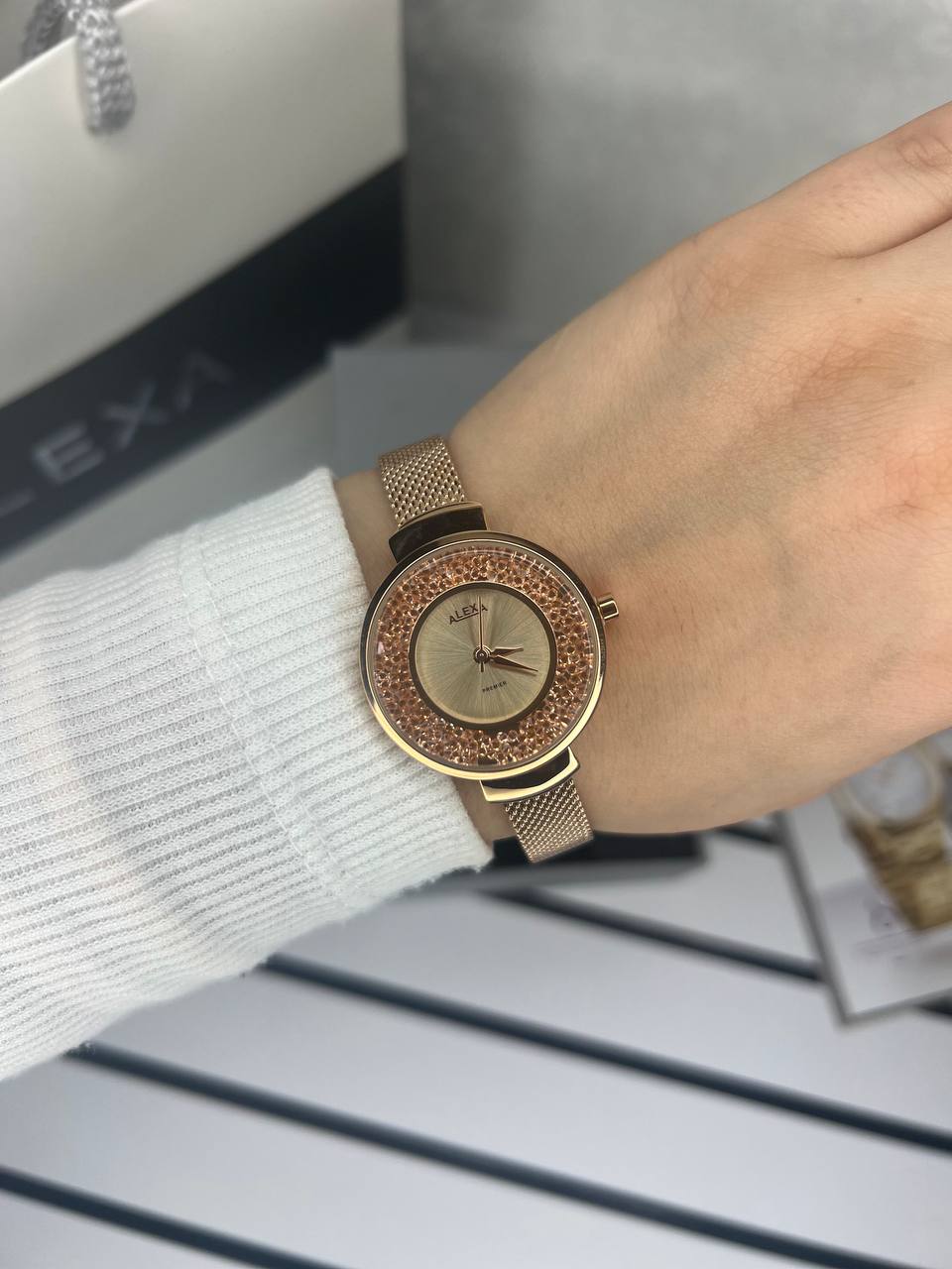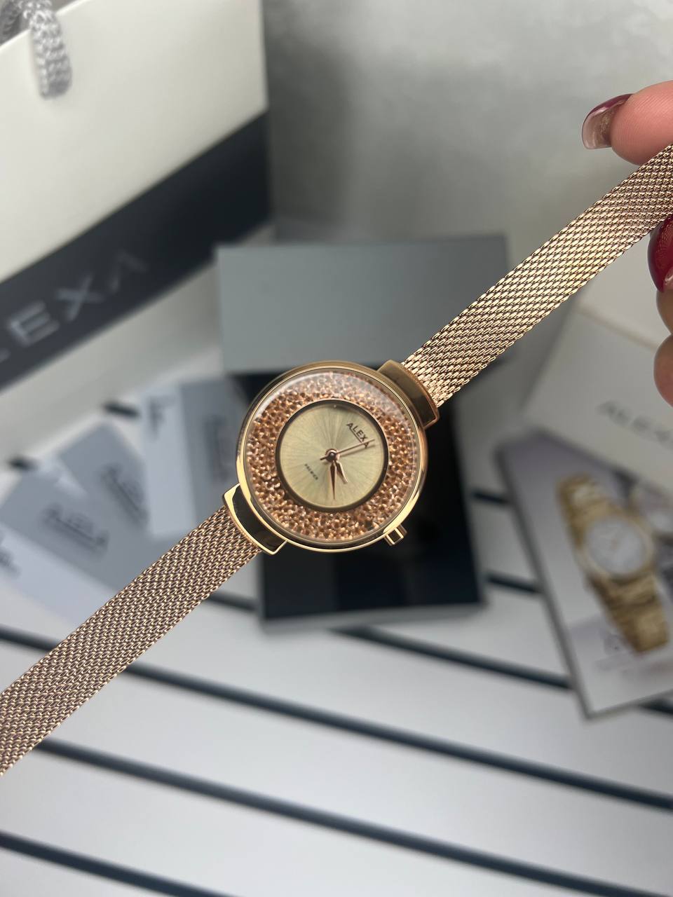 ساعت زنانه اورجینال برند الکسا طرح بند برزنتی مدل Alexa premier 0034