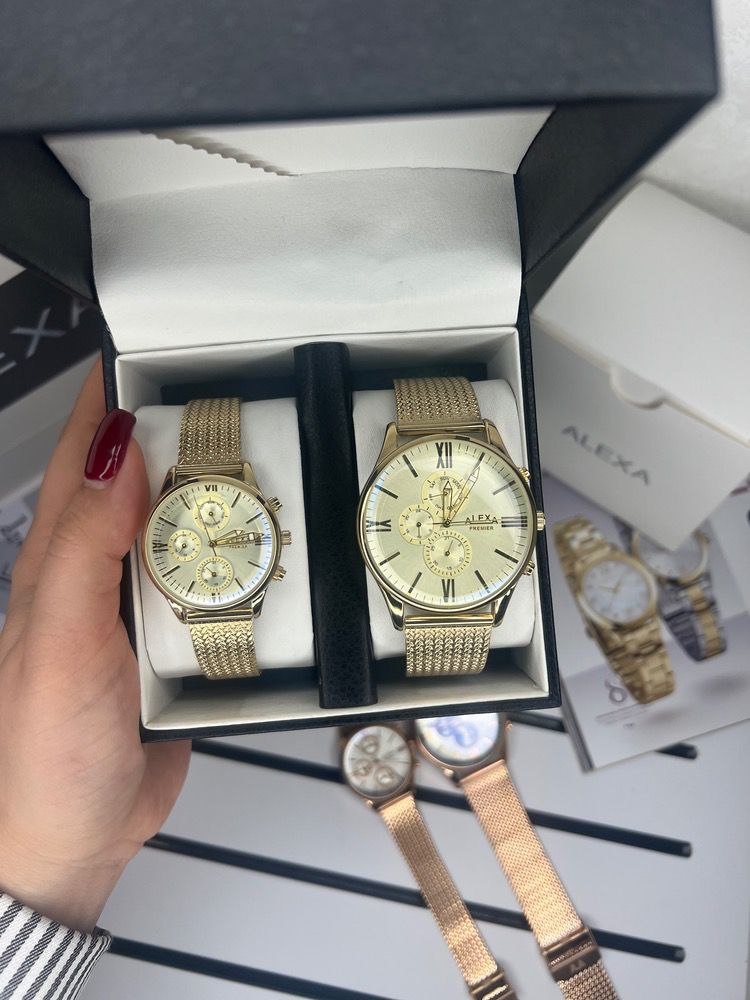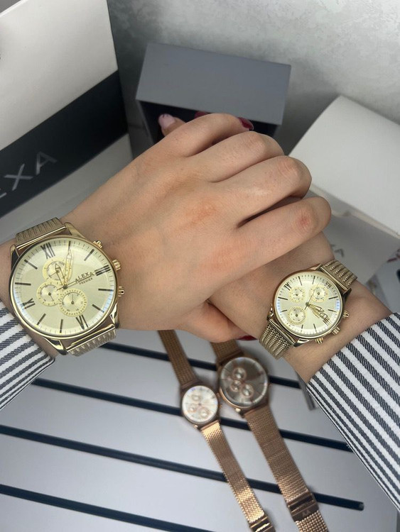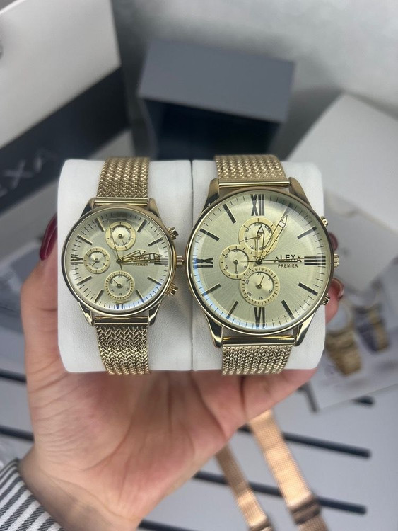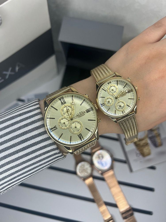 ست ساعت زنانه مردانه اورجینال سه موتور فعآل کورنوگراف برند الکسا مدل A0039.0040